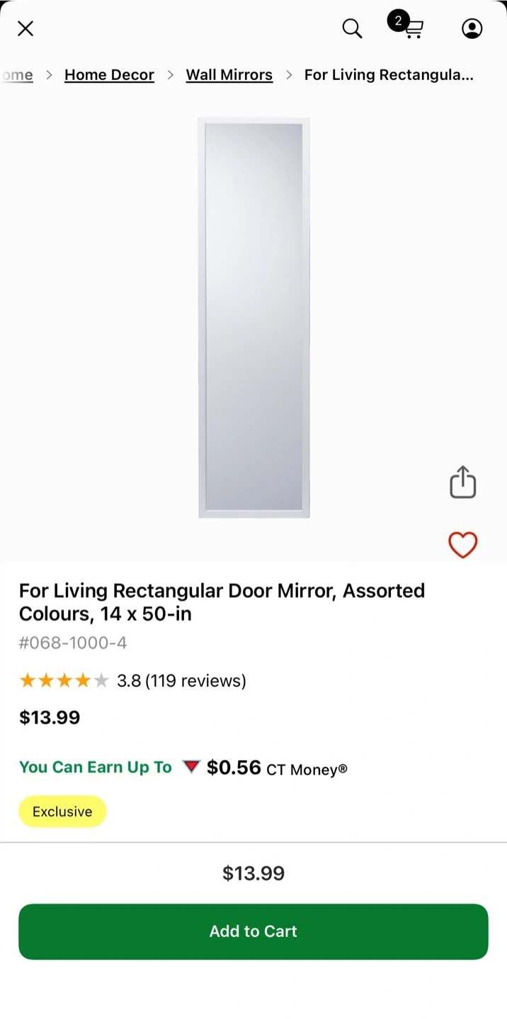 Selling a For Living rectangular door mirror. It's 14 x 50 inches, perfect for checking out your outfit before you head out the door! Retails for $13.99