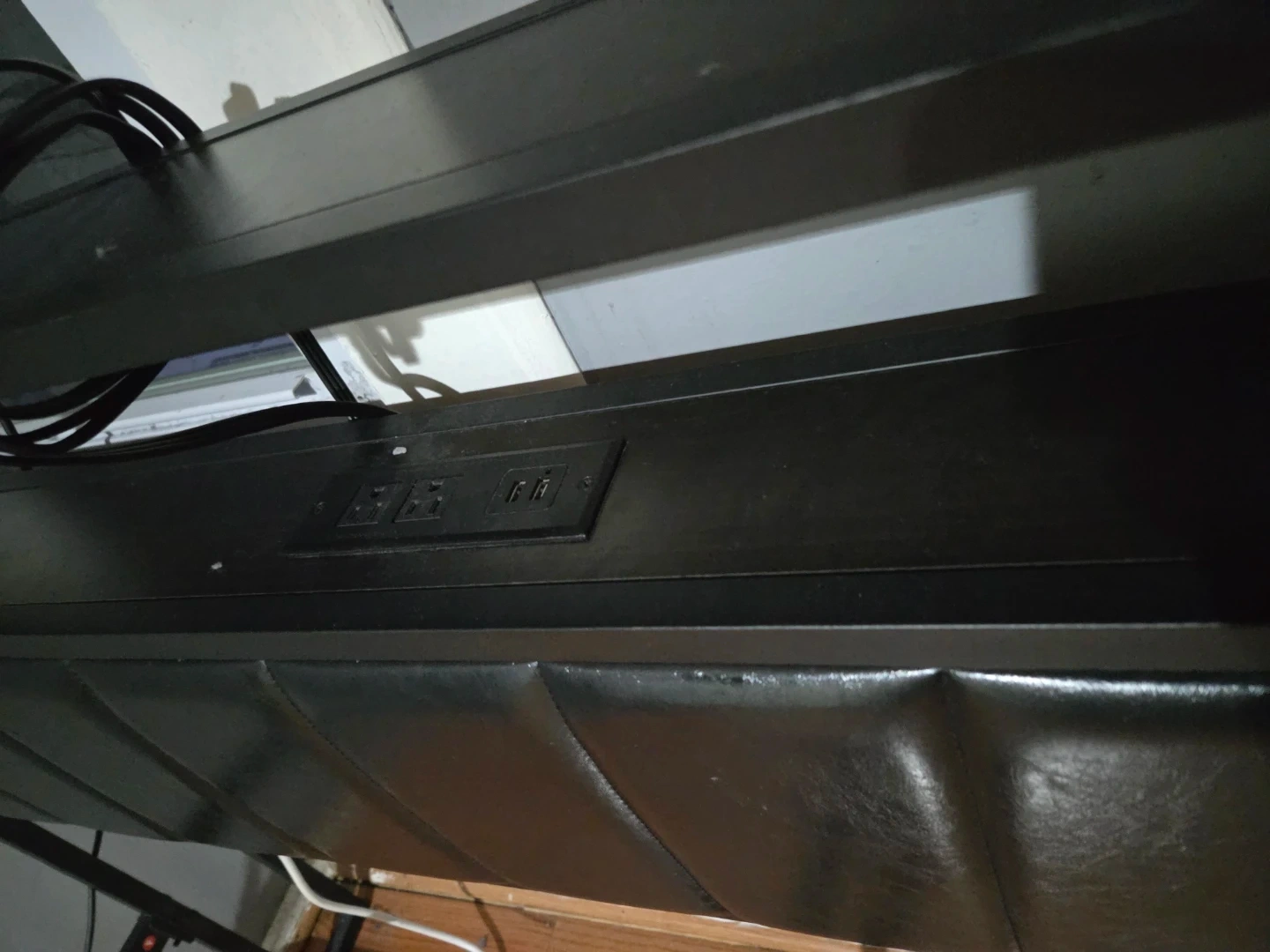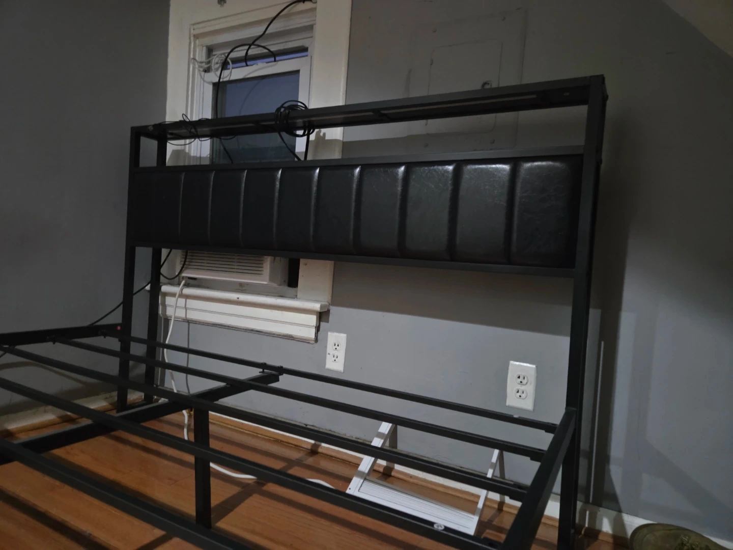 Selling a queen size sturdy black metal bed frame, complete with a headboard. It features a padded headboard and built-in outlets for convenience. Perfect for upgrading your bedroom!