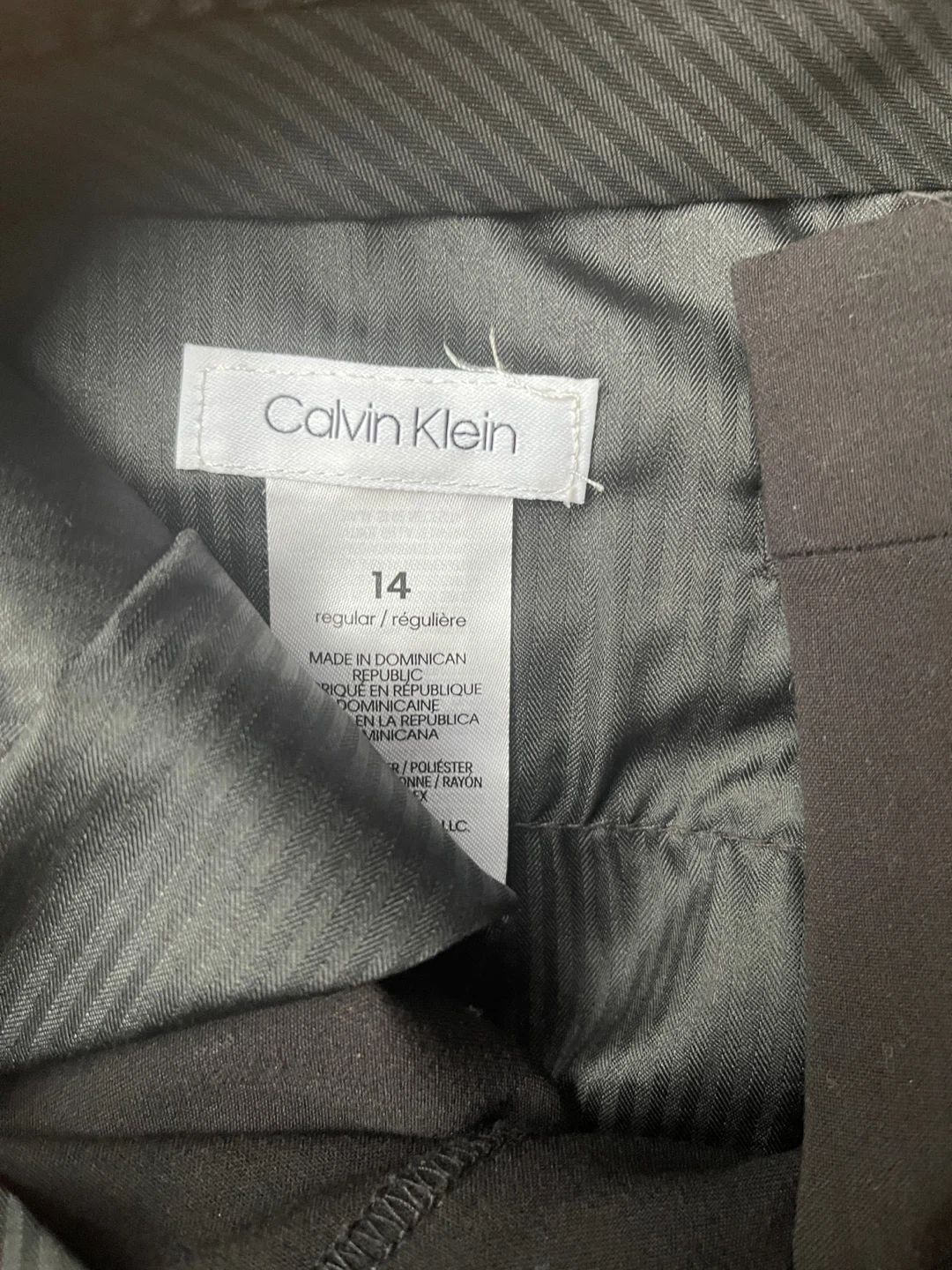 Selling a pair of Calvin Klein black pants in size 14. They are in good condition and ready for a new owner!