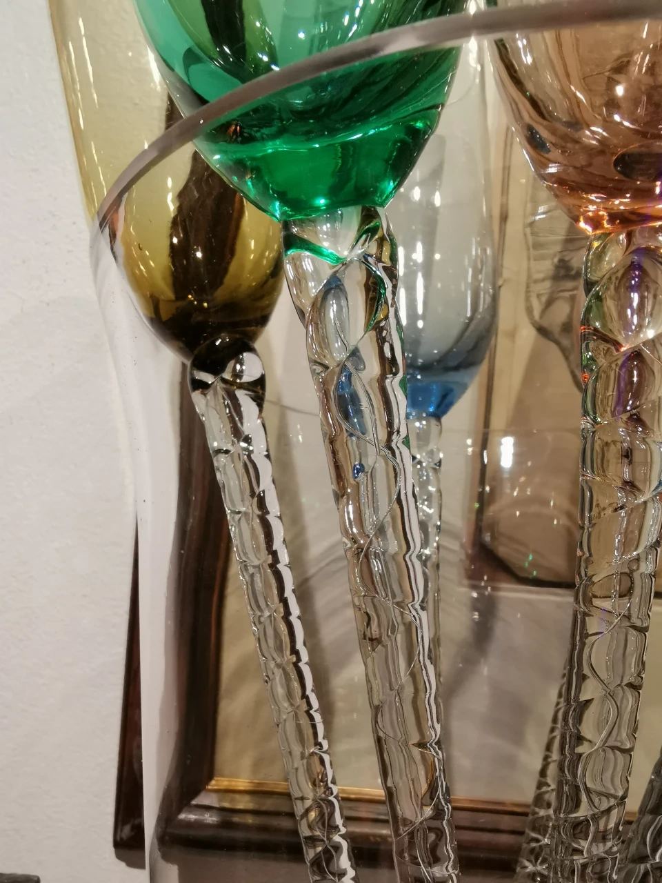 Vintage 1960's hand blown coloured 6 long stem Champagne Flutes