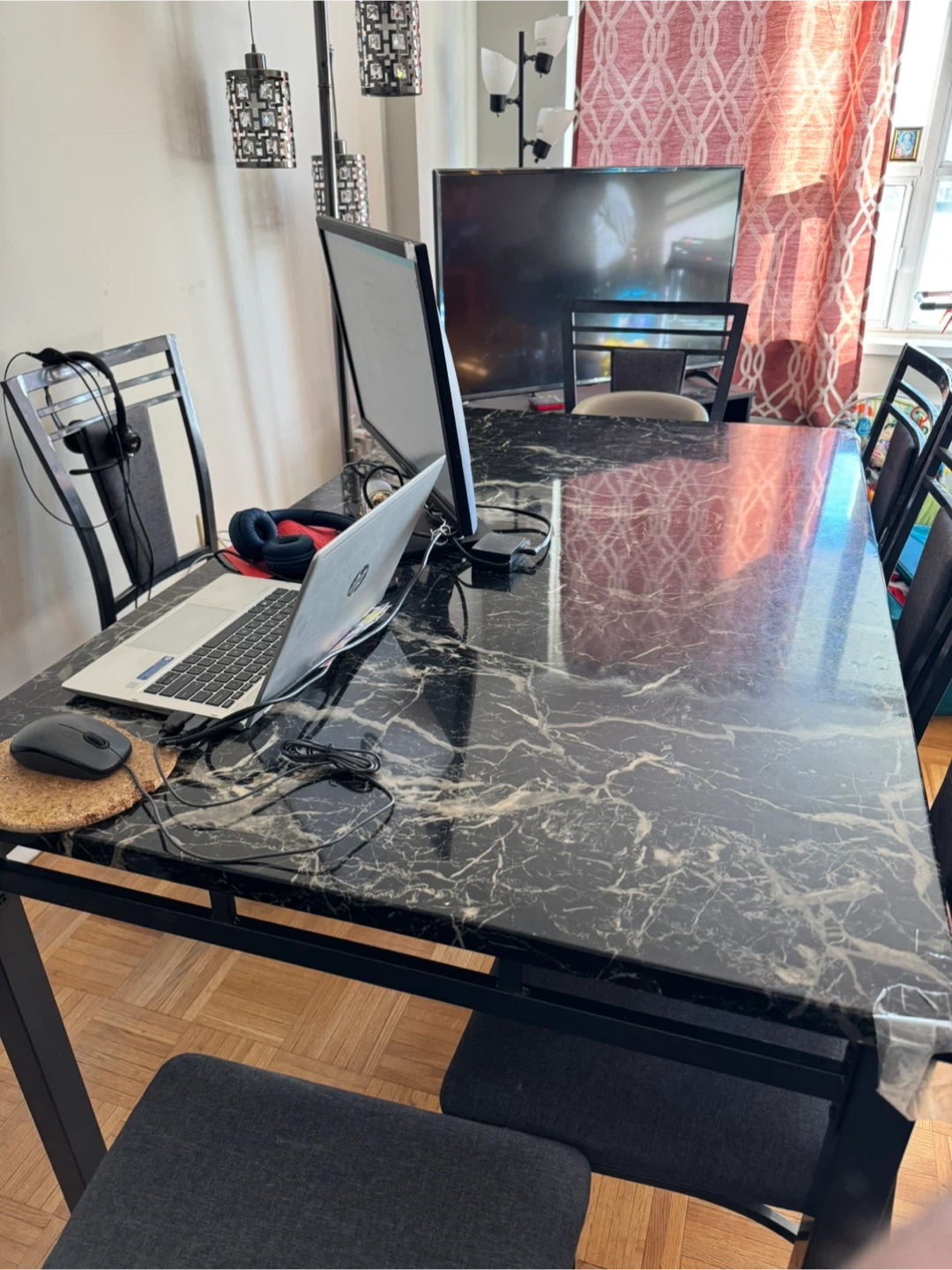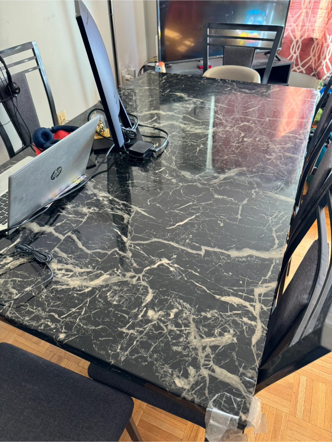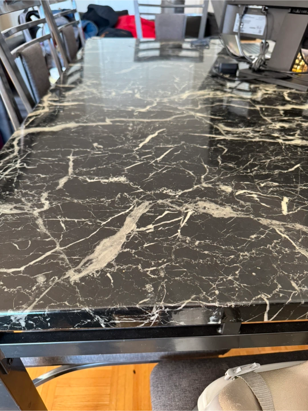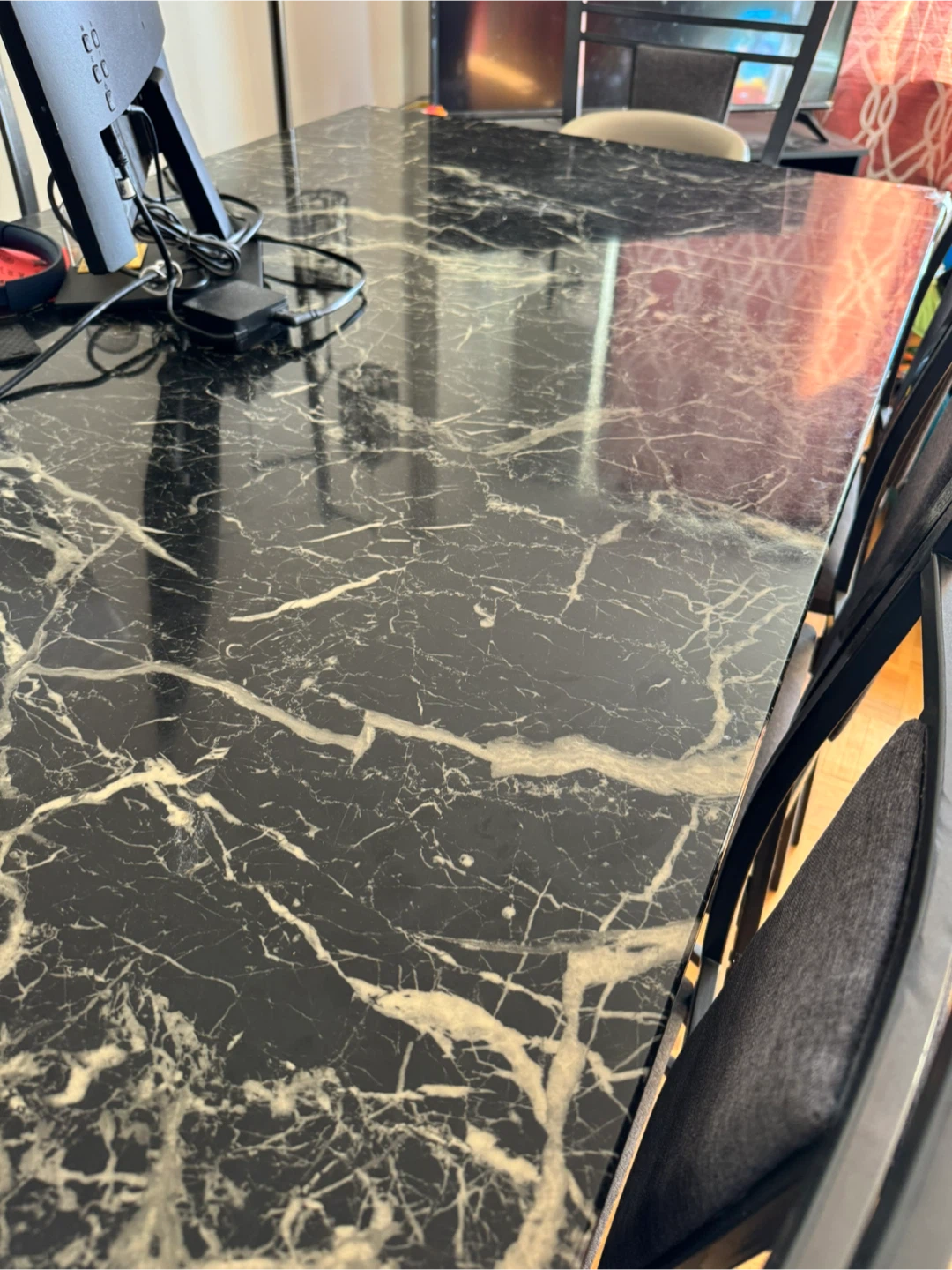 Selling a dining table with a beautiful marble pattern.It's in great condition and ready for a new home!