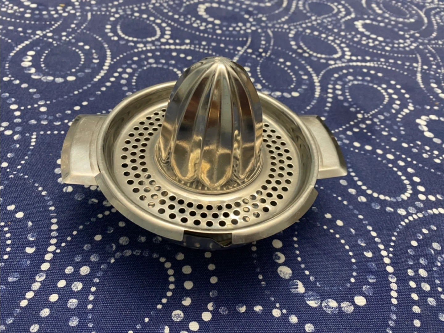Selling a handy citrus juicer made of stainless steel! It's perfect for squeezing lemons, limes, and oranges. It's in great shape and ready to help you make fresh juice at home.