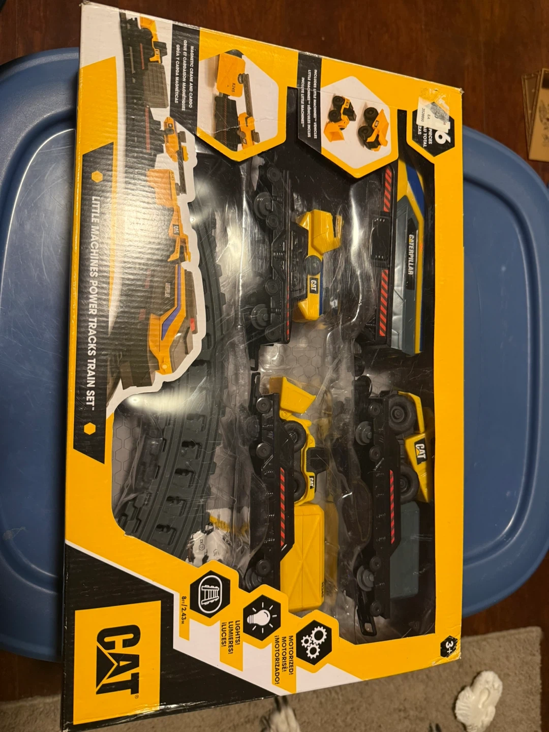 Selling a CAT Little Machines Power Tracks Train Set. It includes little machines vehicles and has lights, and is motorized! Includes a magnetic crane and cargo. It is 8ft/2.43m.