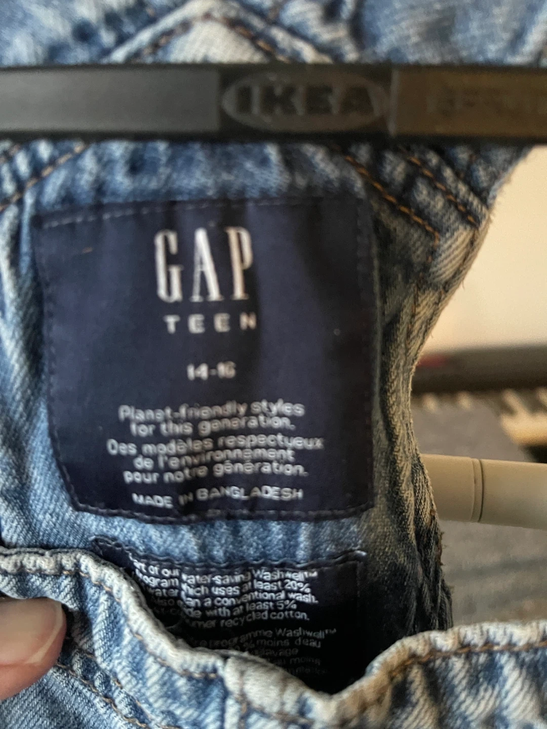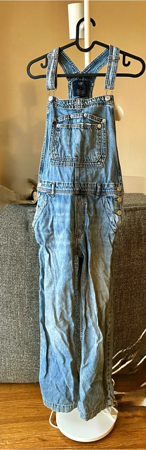 Selling a pair of Gap Teen denim overalls in size 14-16. They're in great condition and ready for a new adventure! The overalls feature a classic denim look.