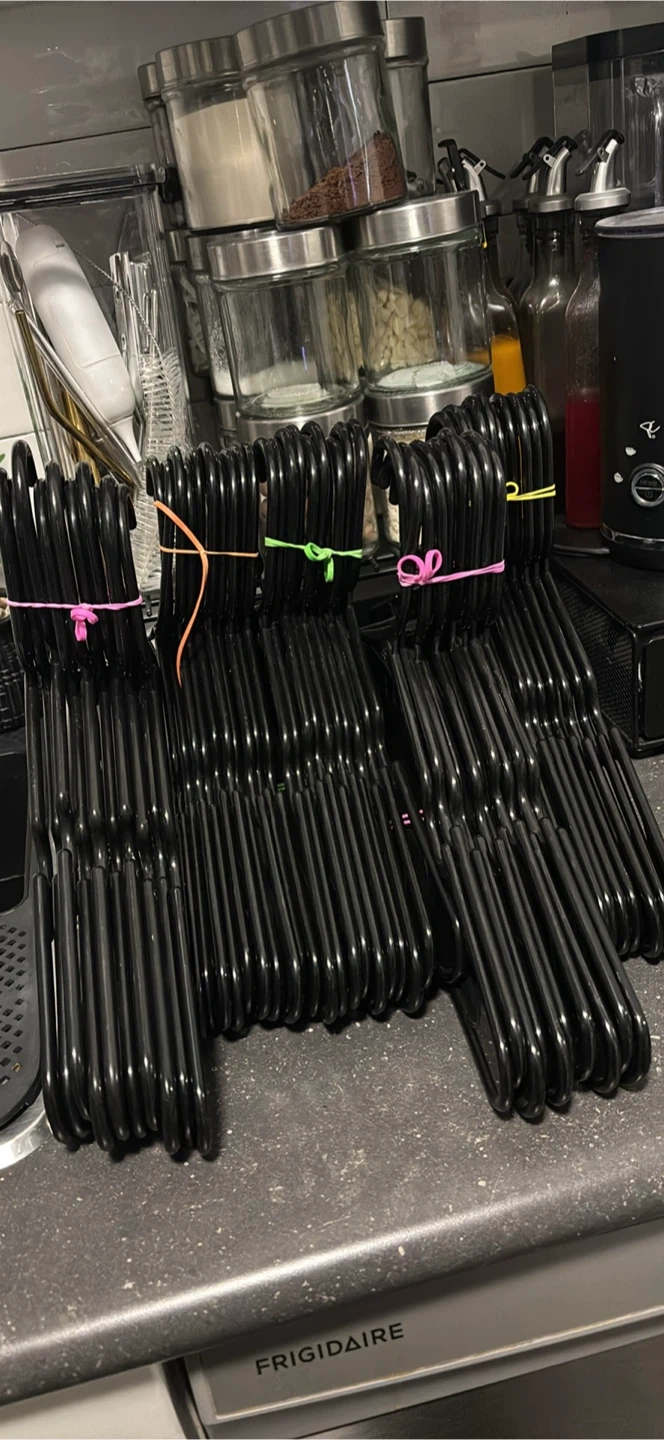 Selling a bunch of clothes hangers! There are some in black and some in grey. I bought new ones so getting rid of the old ones