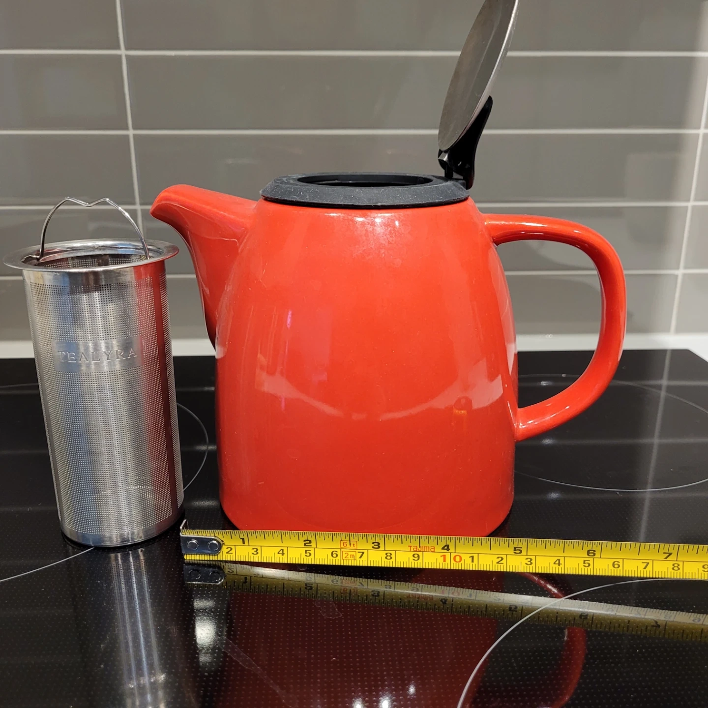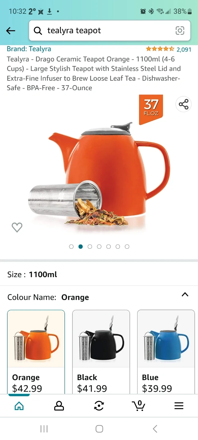 Selling a Tealyra Drago ceramic teapot in orange! It's a stylish teapot with a stainless steel lid and an extra-fine infuser, perfect for brewing loose leaf tea. It holds 1100ml (4-6 cups) and is dishwasher-safe and BPA-free!