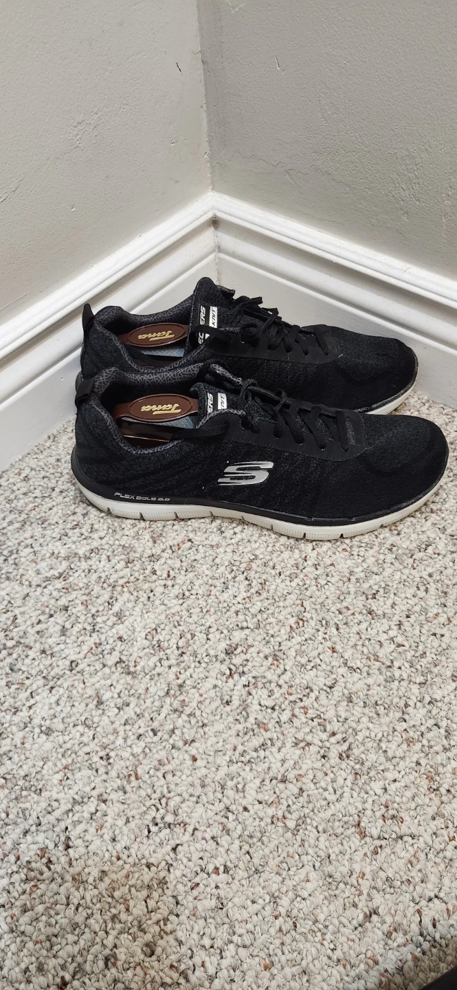 Selling a pair of Skechers Flex Advantage 3.0 in black. They are a US size 12. The upper balance is made of textile and the shoe is made in Vietnam
