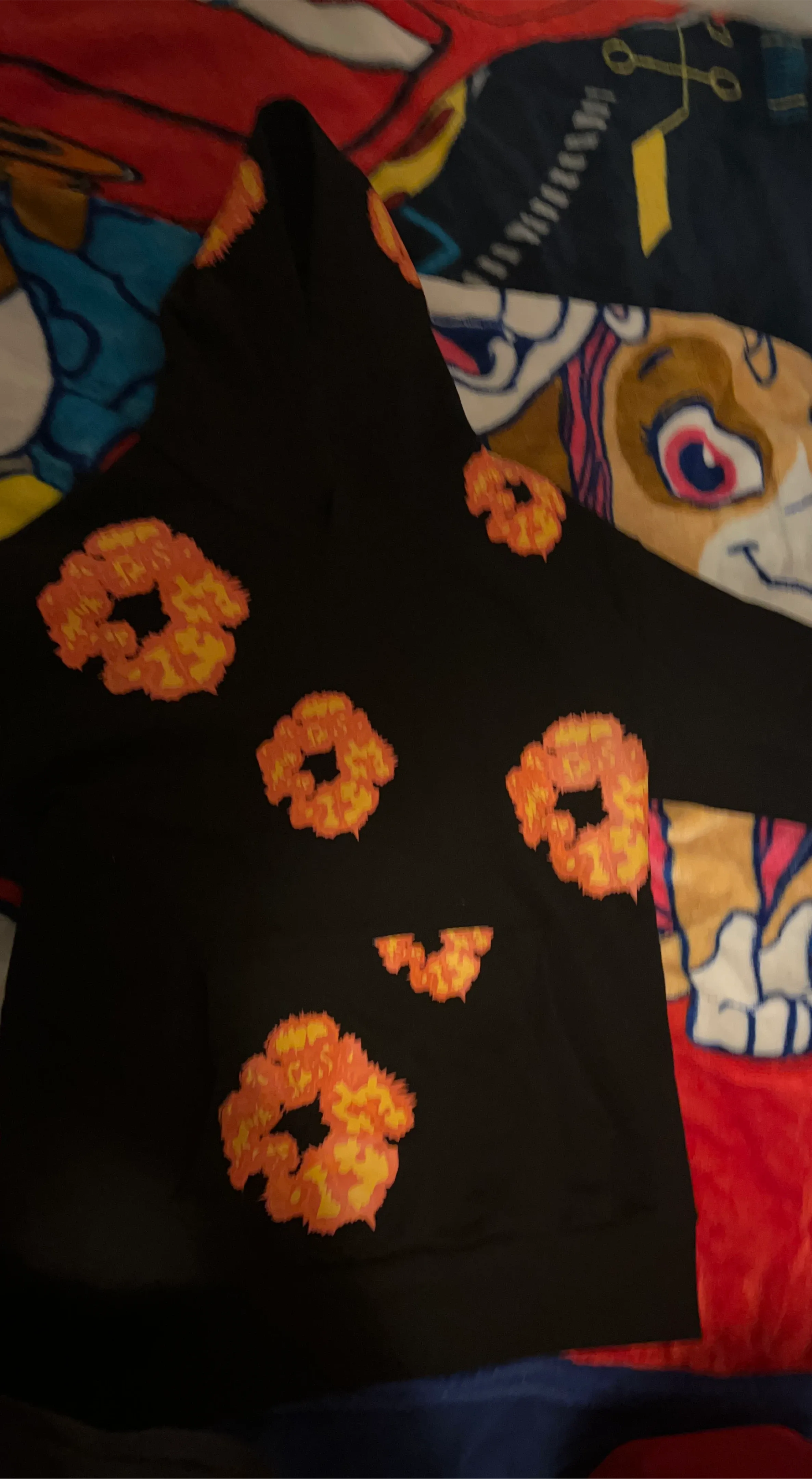 Selling a black hoodie with a unique floral design! It's in great condition and ready for a new owner. The hoodie is perfect for adding a bit of style to your casual wear. Feel free to message if you have any questions!