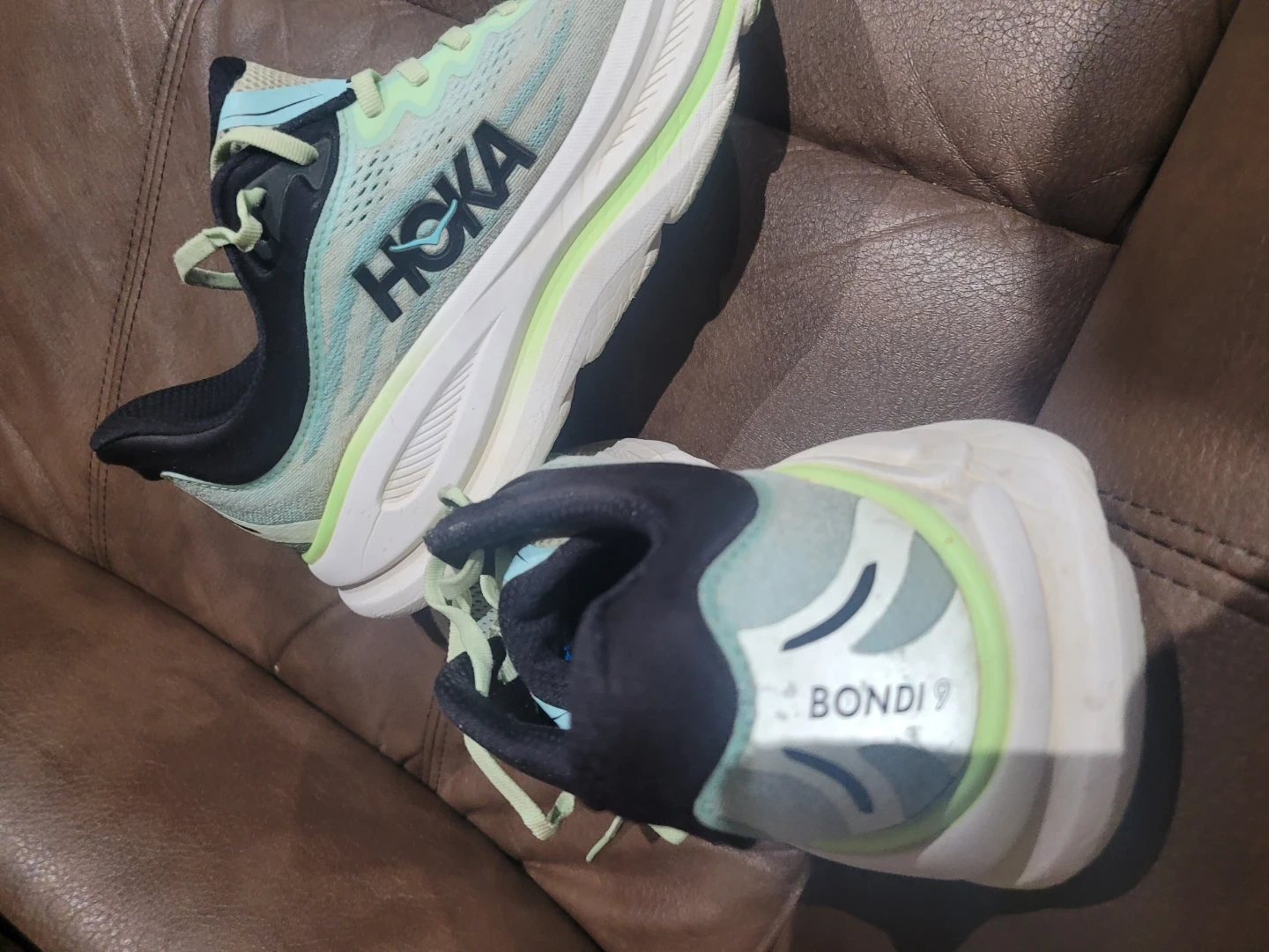 Selling a pair of Hoka Bondi 9 running shoes in women's US size 9.5! These shoes are known for their maximal cushioning and support, making them great for long runs or everyday wear. They're in good condition and ready for a new owner!
