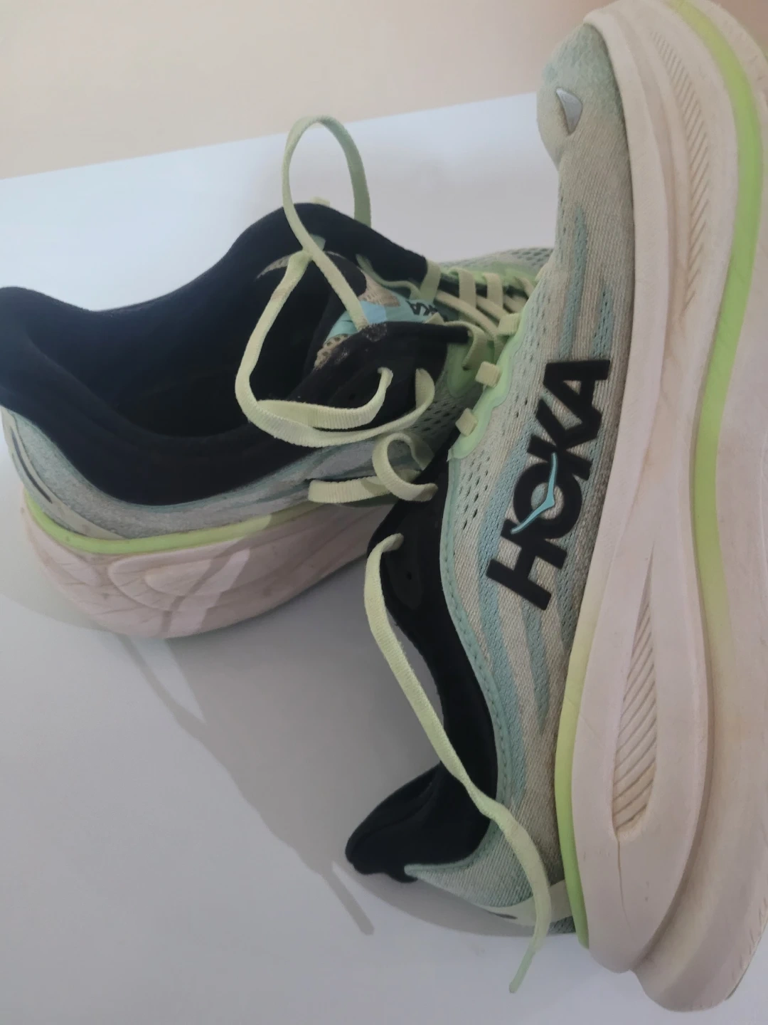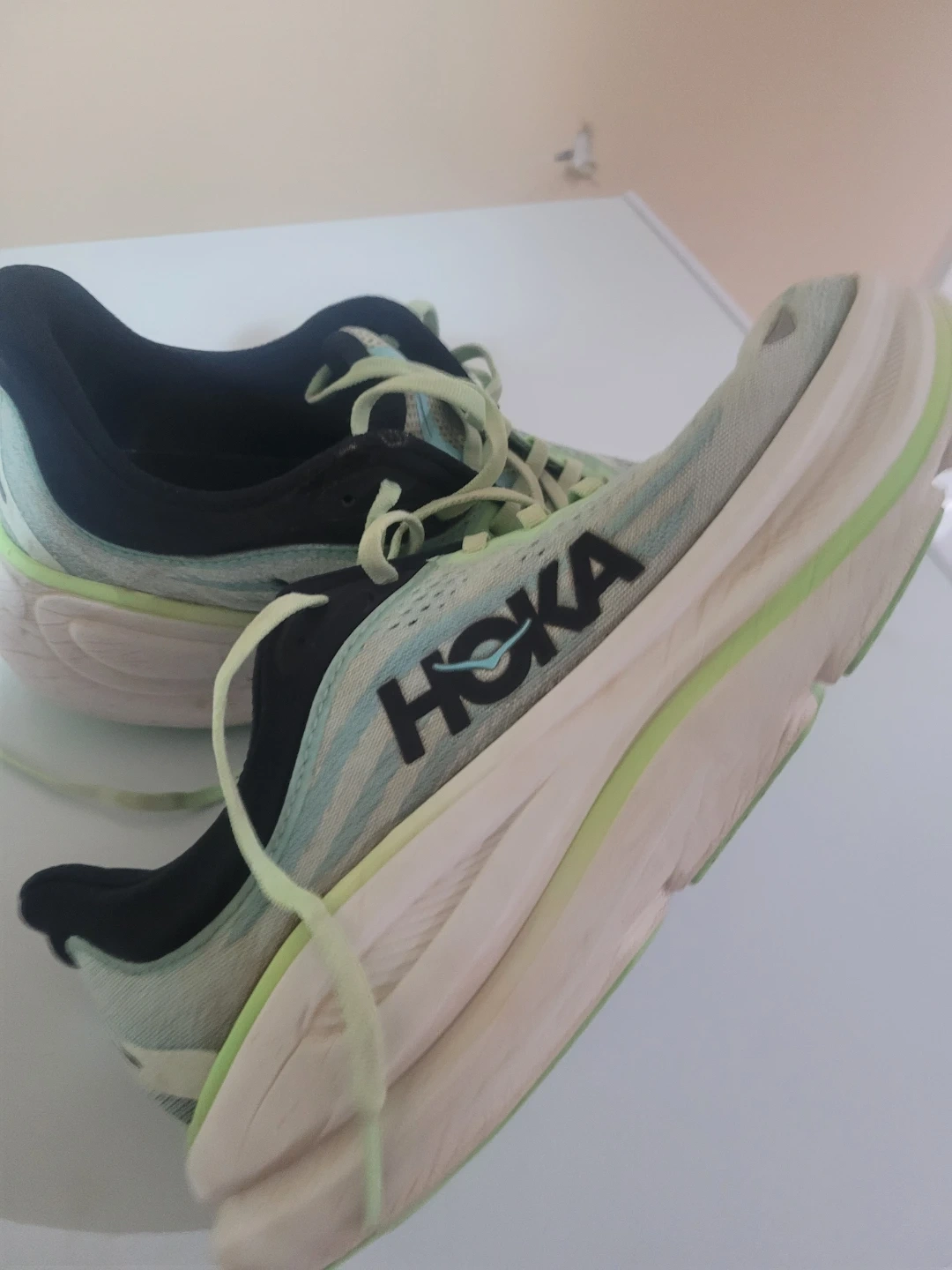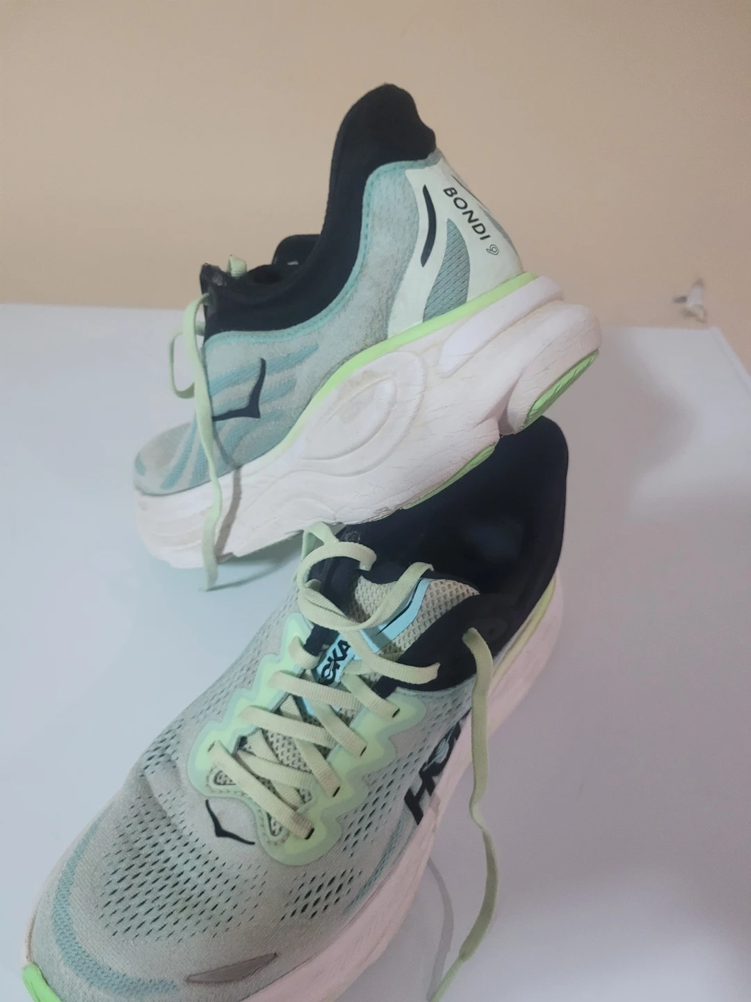 Selling a pair of Hoka Bondi 9 running shoes in women's US size 9.5! These shoes are known for their maximal cushioning and support, making them great for long runs or everyday wear. They're in good condition and ready for a new owner!