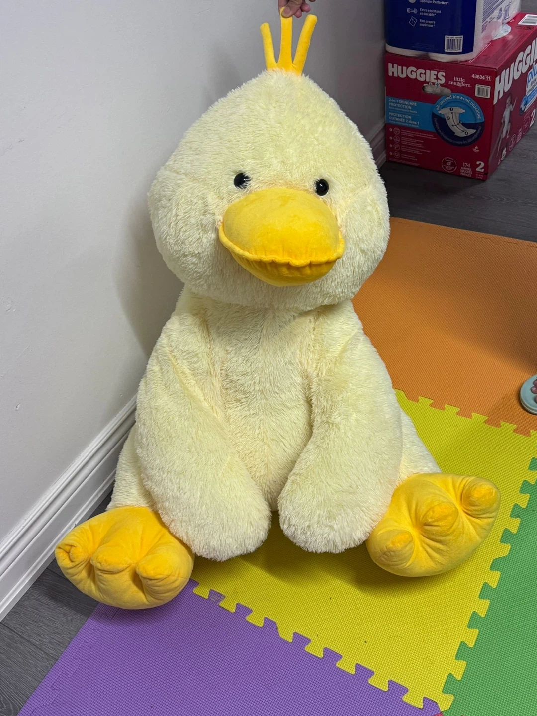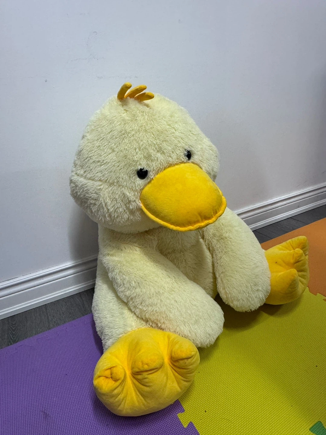 Selling a large, cuddly plush yellow duck! It's in great condition and ready for a new home. It's a soft and huggable friend for anyone who loves ducks or stuffed animals. Suitable as children’s room decor.