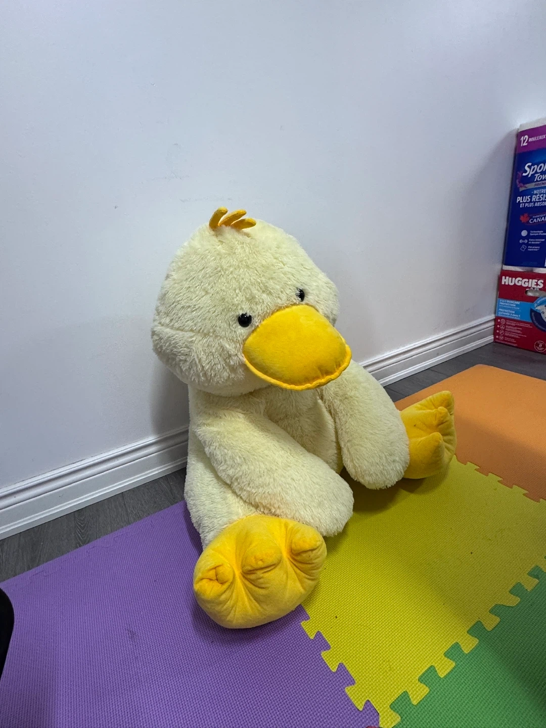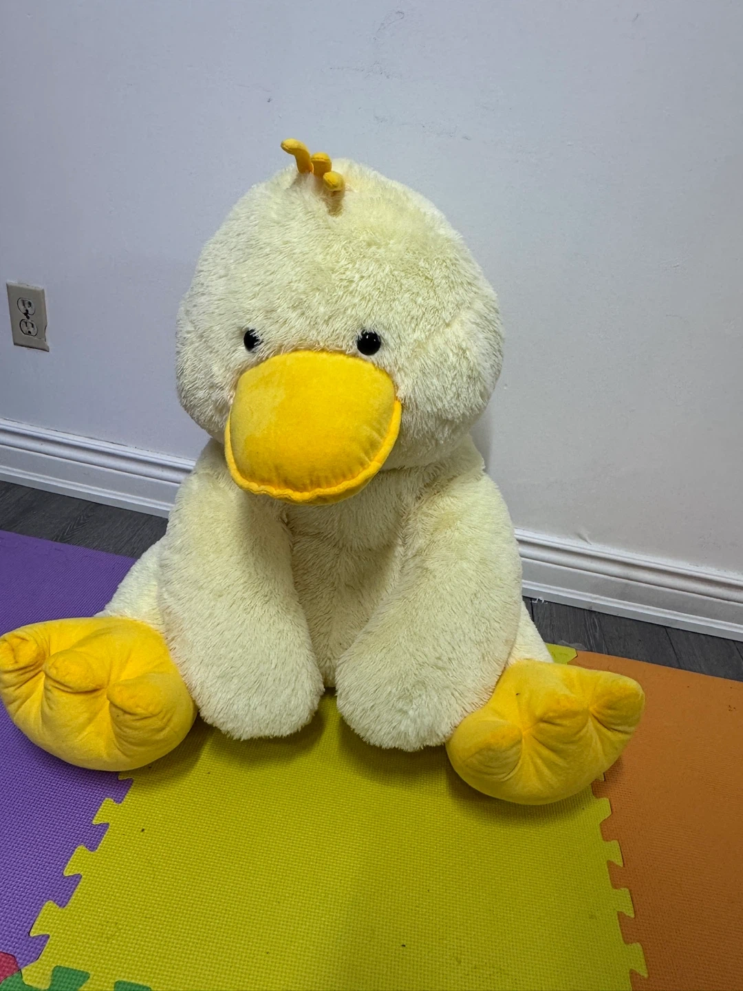 Selling a large, cuddly plush yellow duck! It's in great condition and ready for a new home. It's a soft and huggable friend for anyone who loves ducks or stuffed animals. Suitable as children’s room decor.
