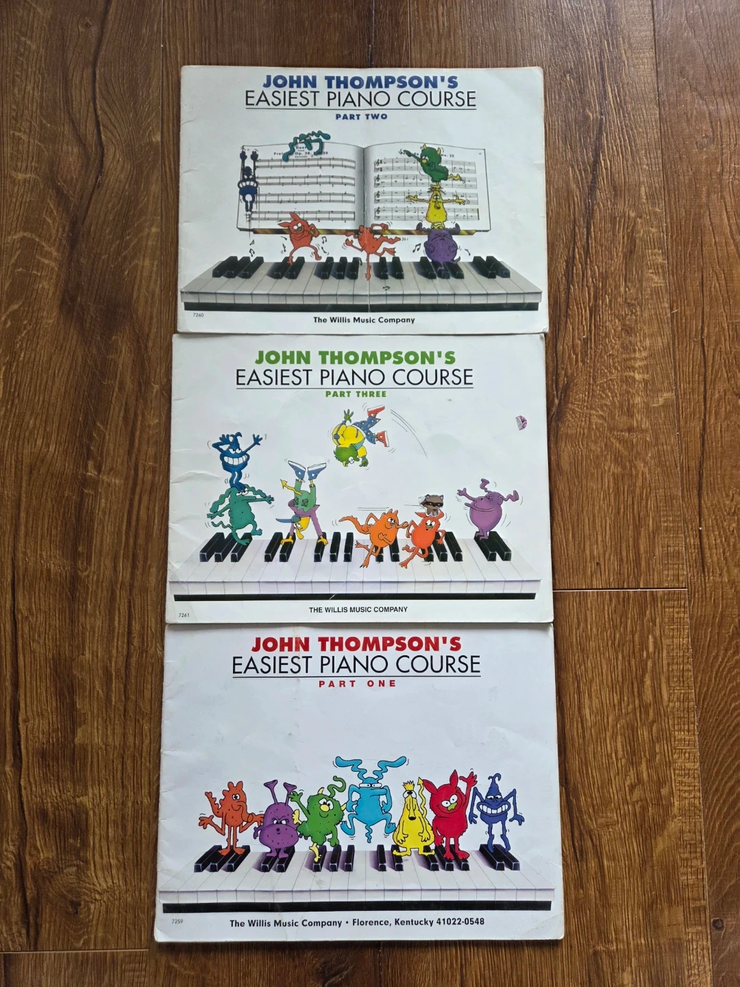 Selling a set of John Thompson's Easiest Piano Course books! This includes Part One, Part Two, and Part Three. Perfect for beginners learning to play the piano.