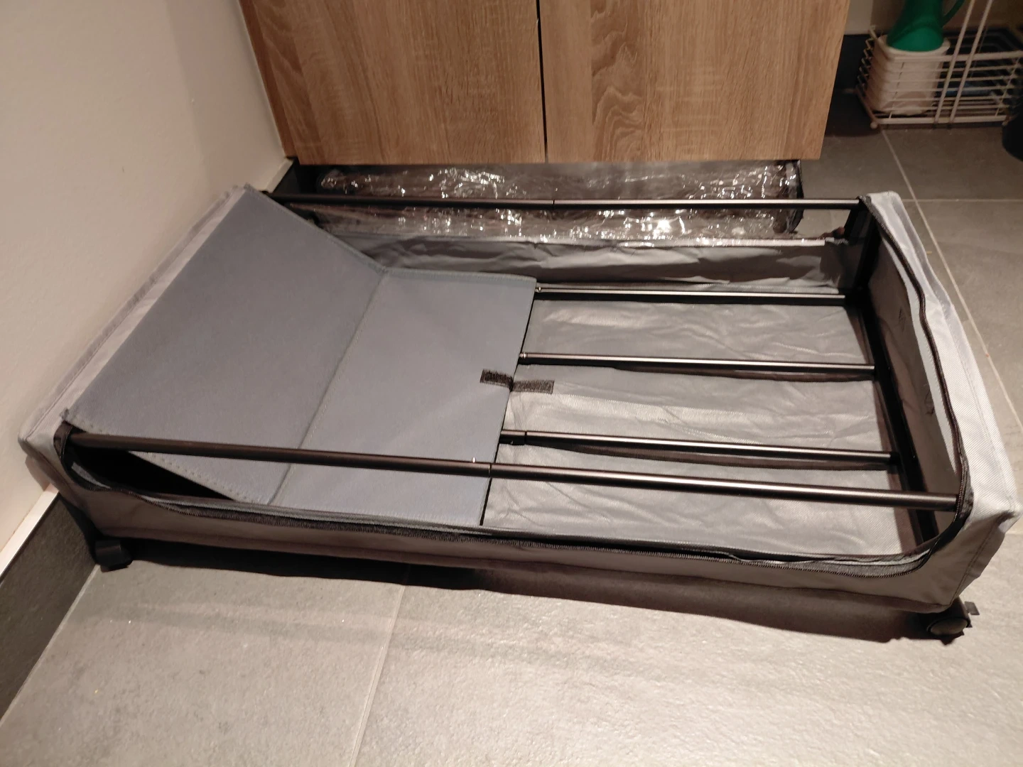I'm selling a foldable rolling storage sorter. It's in great shape and ready to help you organize your storage.! It features a sturdy frame with wheels for easy transport, and it folds up for convenient storage when not in use