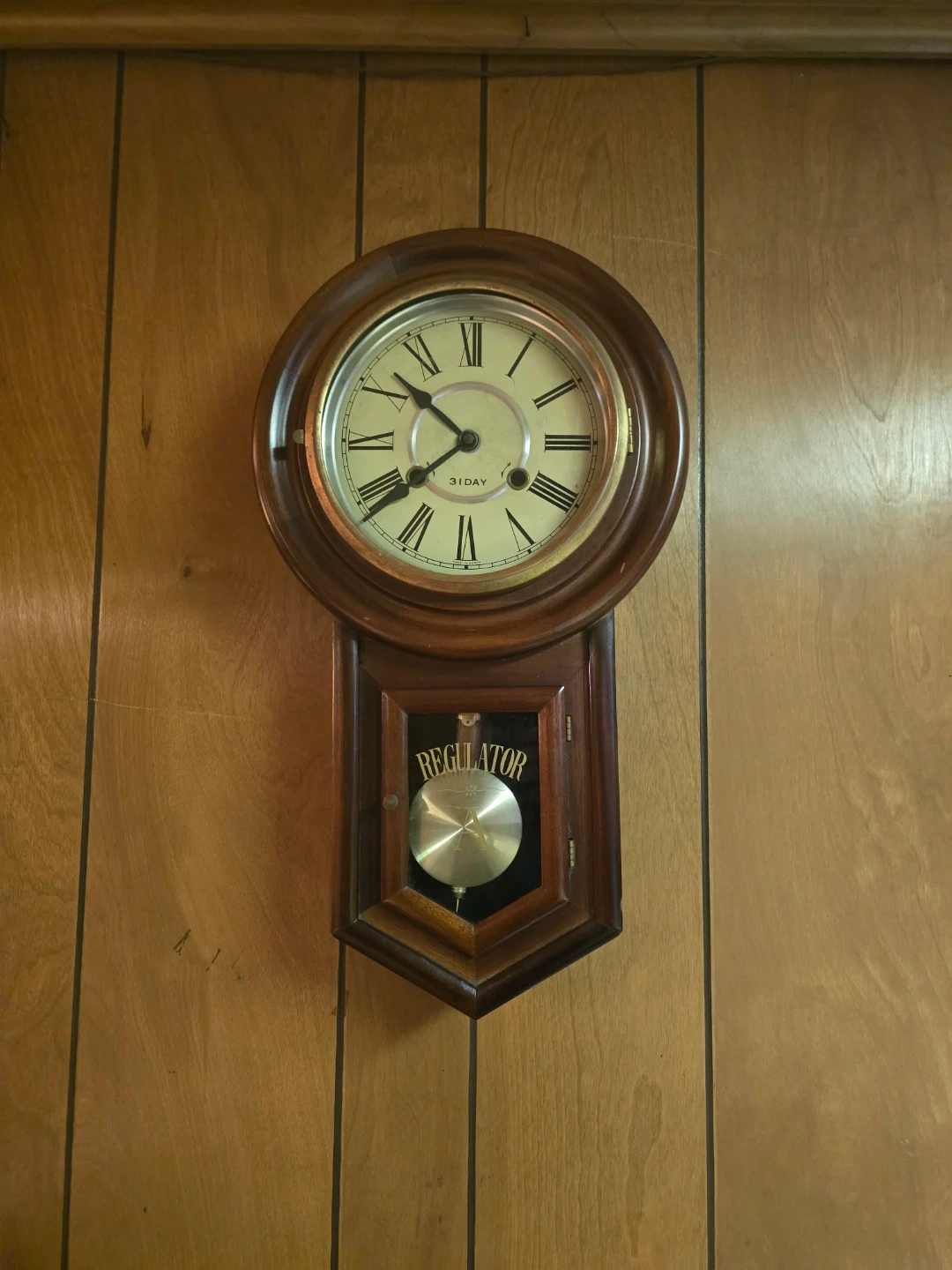 Selling a vintage Regulator 31 Day wall clock! It's a beautiful piece that would look great in any home. The clock has a classic design with Roman numerals and a pendulum.