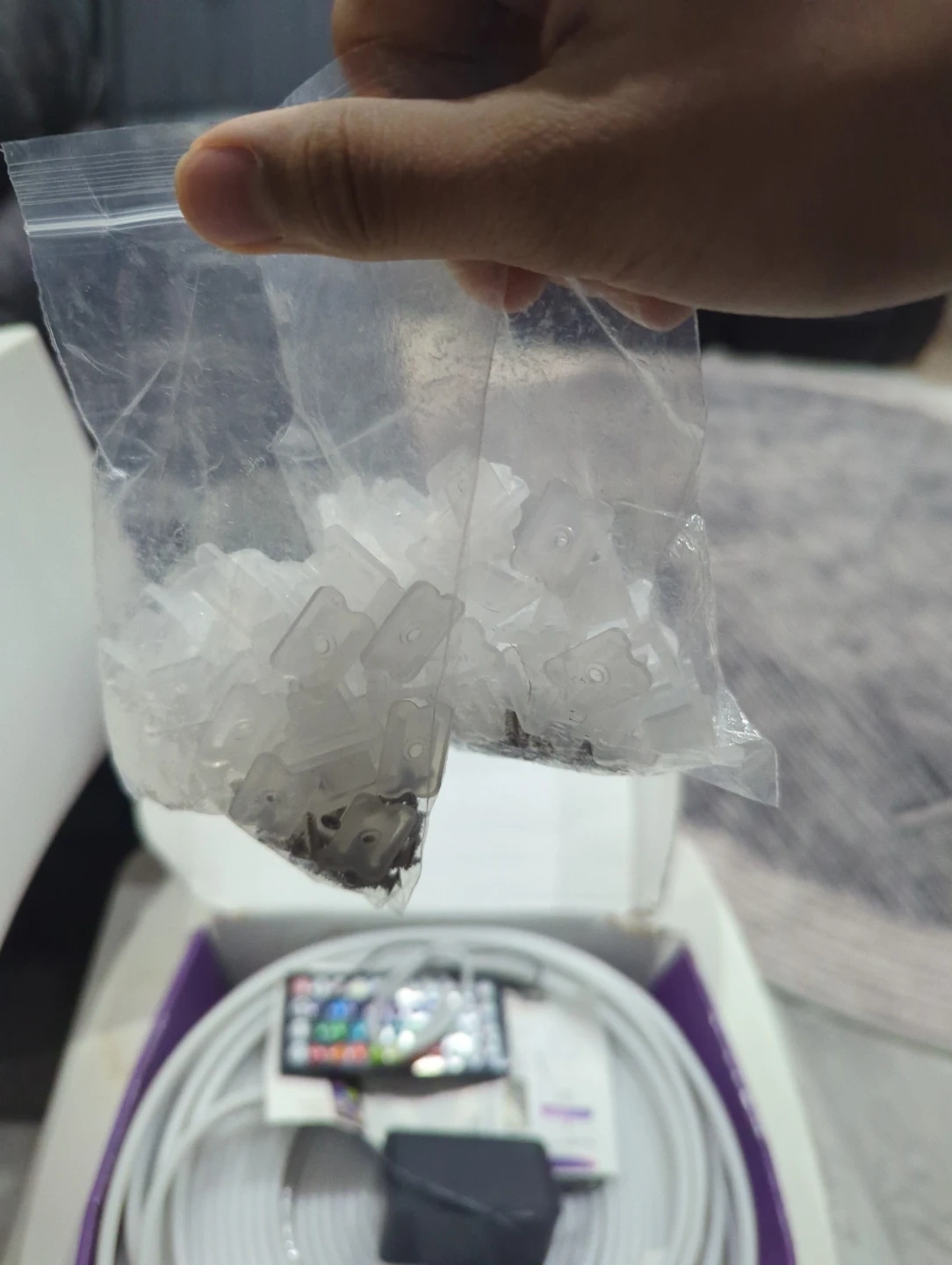 Selling a set of LED neon rope lights! It comes with a remote and all the necessary mounting clips. The lights are in great condition and ready to add some fun to any room. The box is included as well and the QR code to bind it on the app. We bought it 2 years ago from Amazon for my son but he didn't use it. The condition is very new because we never really used it too much only when it came from Amazon and it's in a Smoke free house with no pets at all.