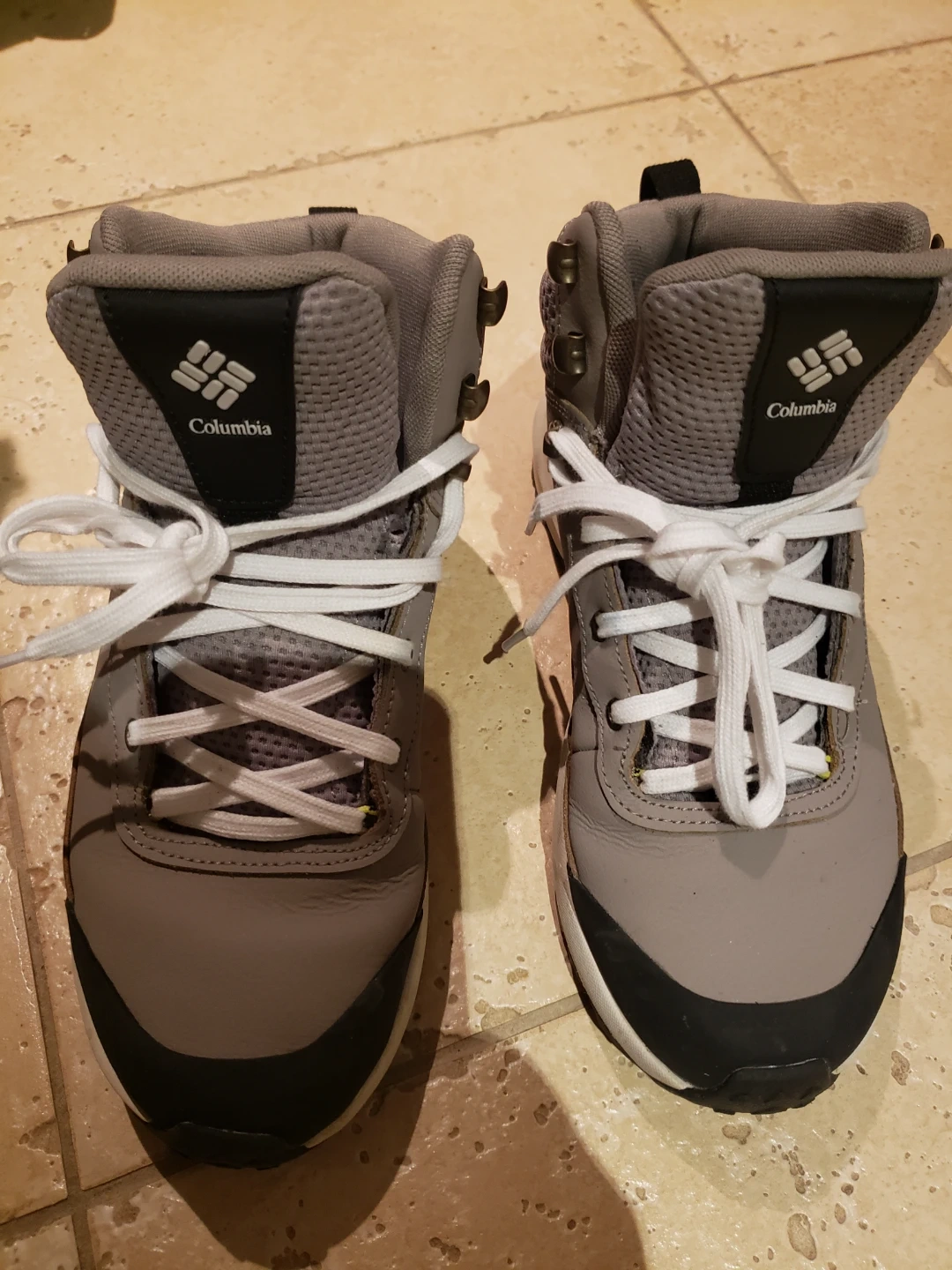Selling a pair of Columbia Youth Newton Ridge waterproof hiking boots in size 7. They are in good condition and ready for your next adventure! The boots are grey with black accents and have a durable outsole for traction.