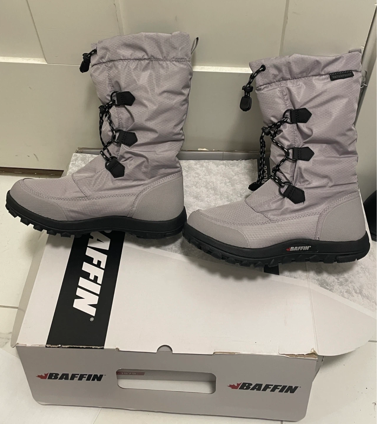 Baffin snow boots in a lovely grey colour! These boots come with their original box. They're perfect for keeping your feet warm and dry during the winter months
