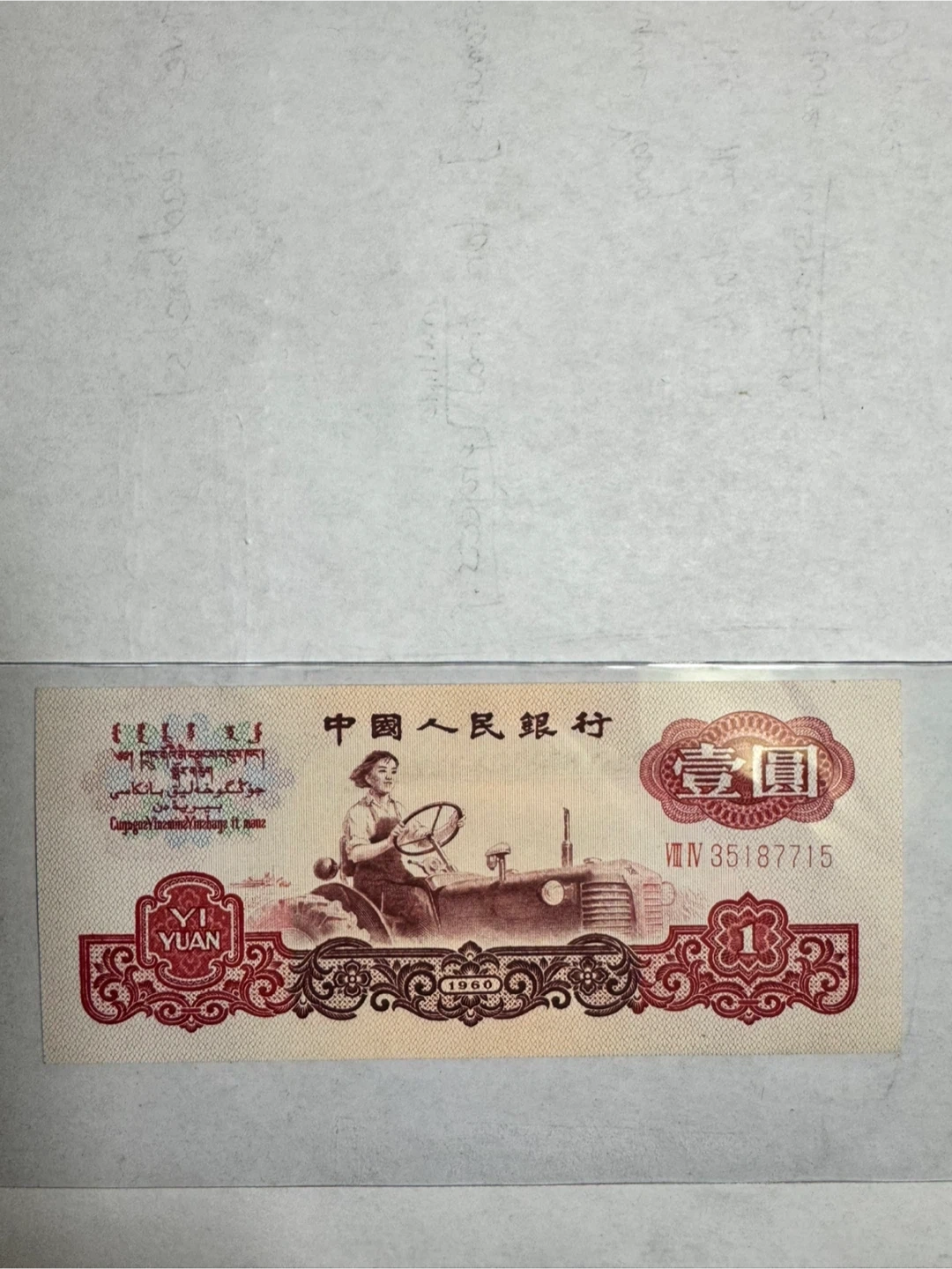 1960 Chinese 1 Yuan banknote from the Third Series of RMB. Front shows the tractor driver, back has a rural herding scene. Not graded, uncirculated, condition is exactly as shown in the photos. Kept flat in a sleeve. Message if you have questions.