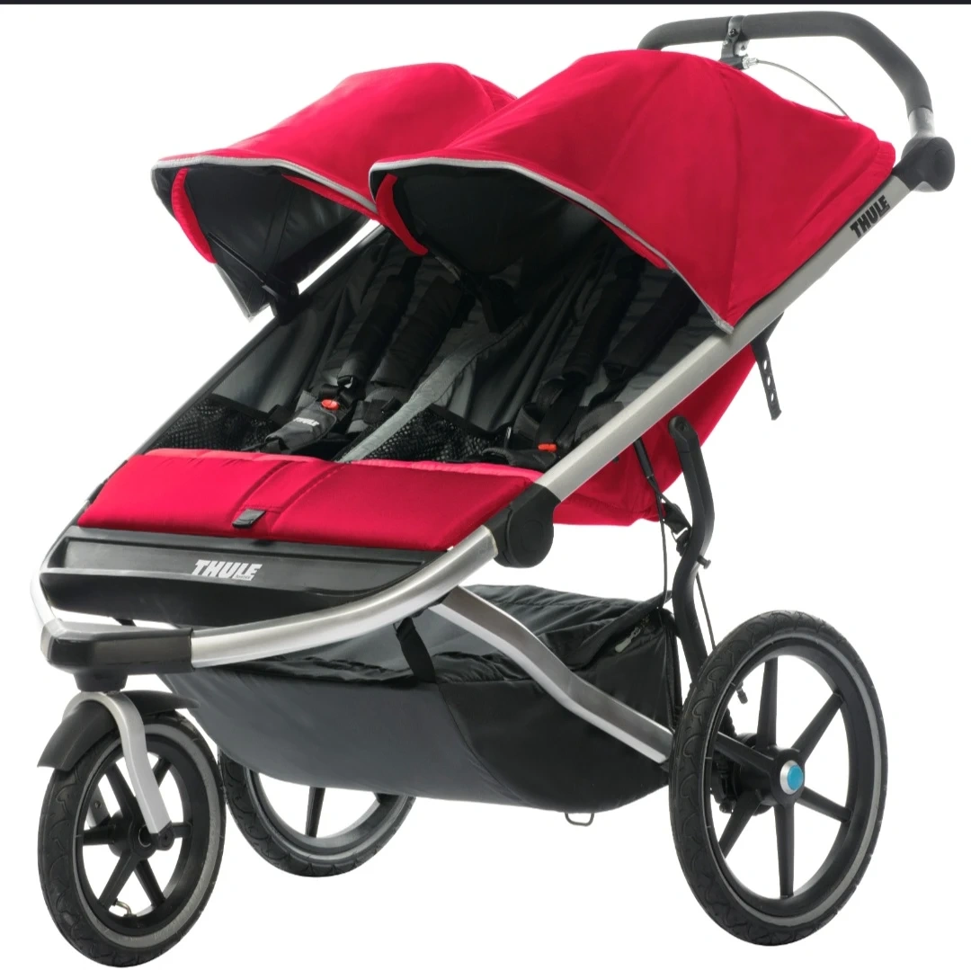 Selling a Thule Urban Glide 2 double stroller in red. It's in good condition and ready for your little ones to enjoy some outdoor adventures! Perfect for walks, jogs, or just getting around town with two kiddos. Lightly used nothing broken or missing no stains raincover included.