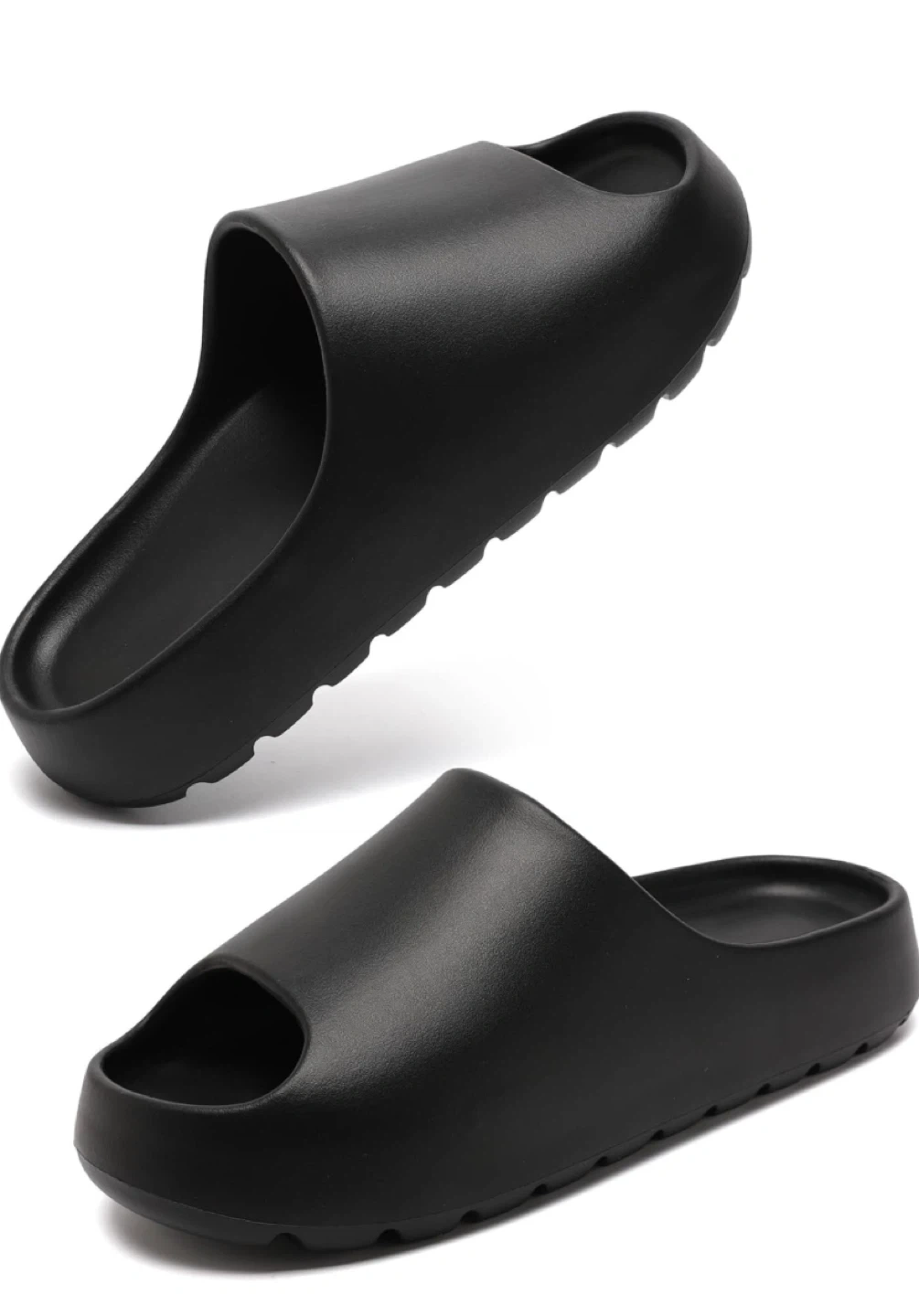 Selling a pair of black slides. They're in great condition and super comfy! Perfect for wearing around the house or running quick errands. They are lightweight and portable