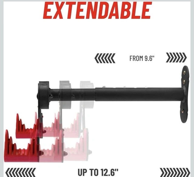 PRO BIKE TOOL Bike Wall Mount - Adjustable Hanging Arms Horizontal Bike Rack - For Almost Every Bike - Bike Wall Hanger with Durable Metal Construction - Black/Red - Set of 2
