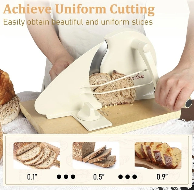 Manual Bread Slicer for Homemade Sourdough, Metal Guide & Adjustable Thickness, Hand Crank with Scale Line and Suction Cup, Sharp Blade