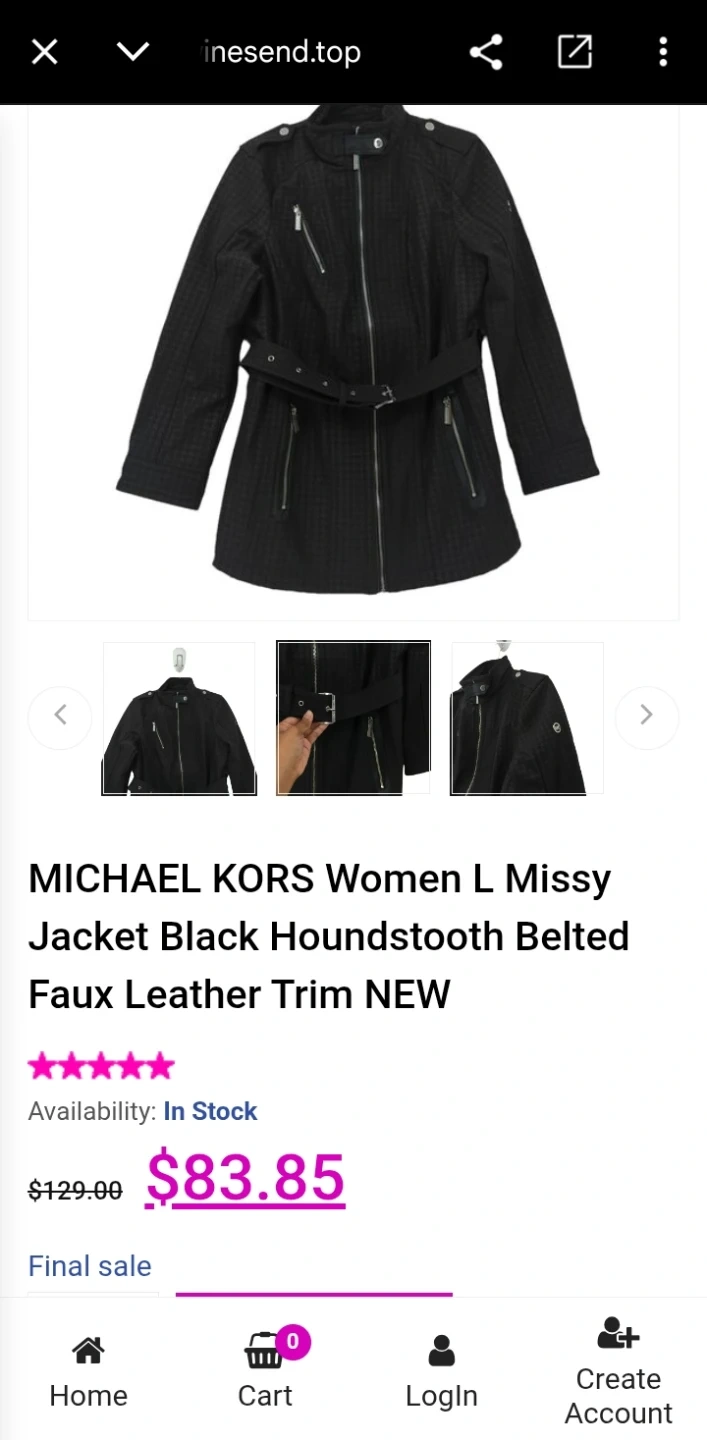 Selling a brand new Michael Kors women's jacket in size L! It's a stylish black houndstooth belted jacket with faux leather trim. Originally priced at $83.85!