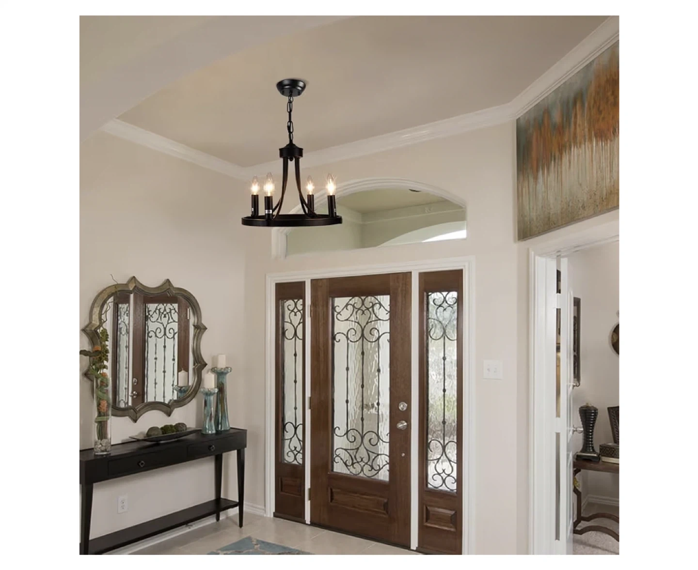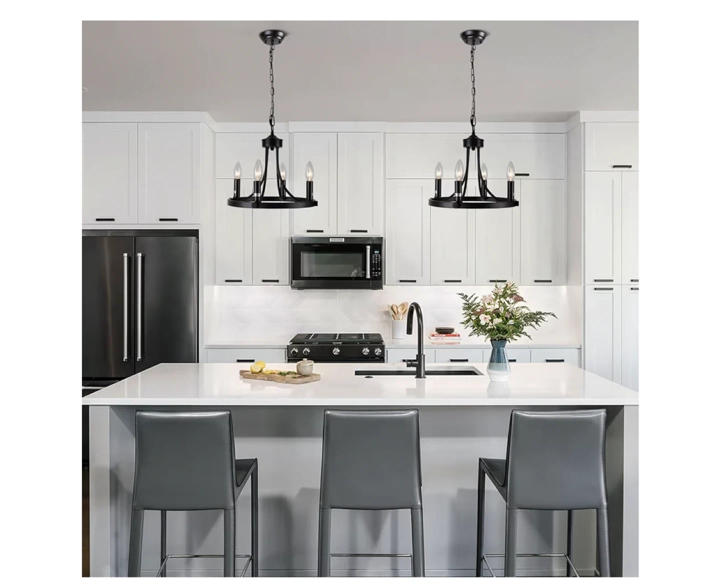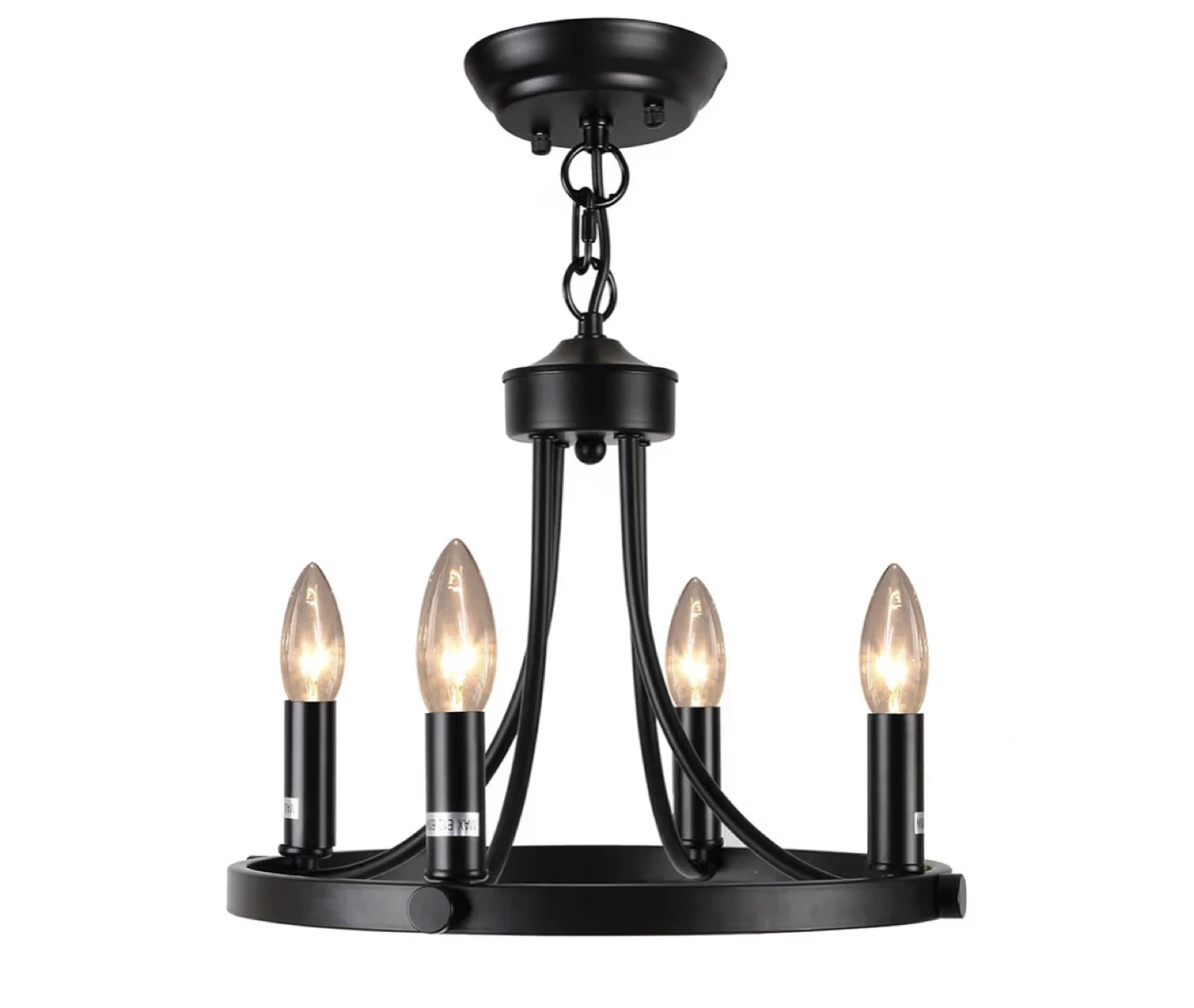Add a touch of elegance to your home with this stylish black chandelier! It features four candle-style lights and an adjustable height, making it perfect for various spaces. The dimensions are: