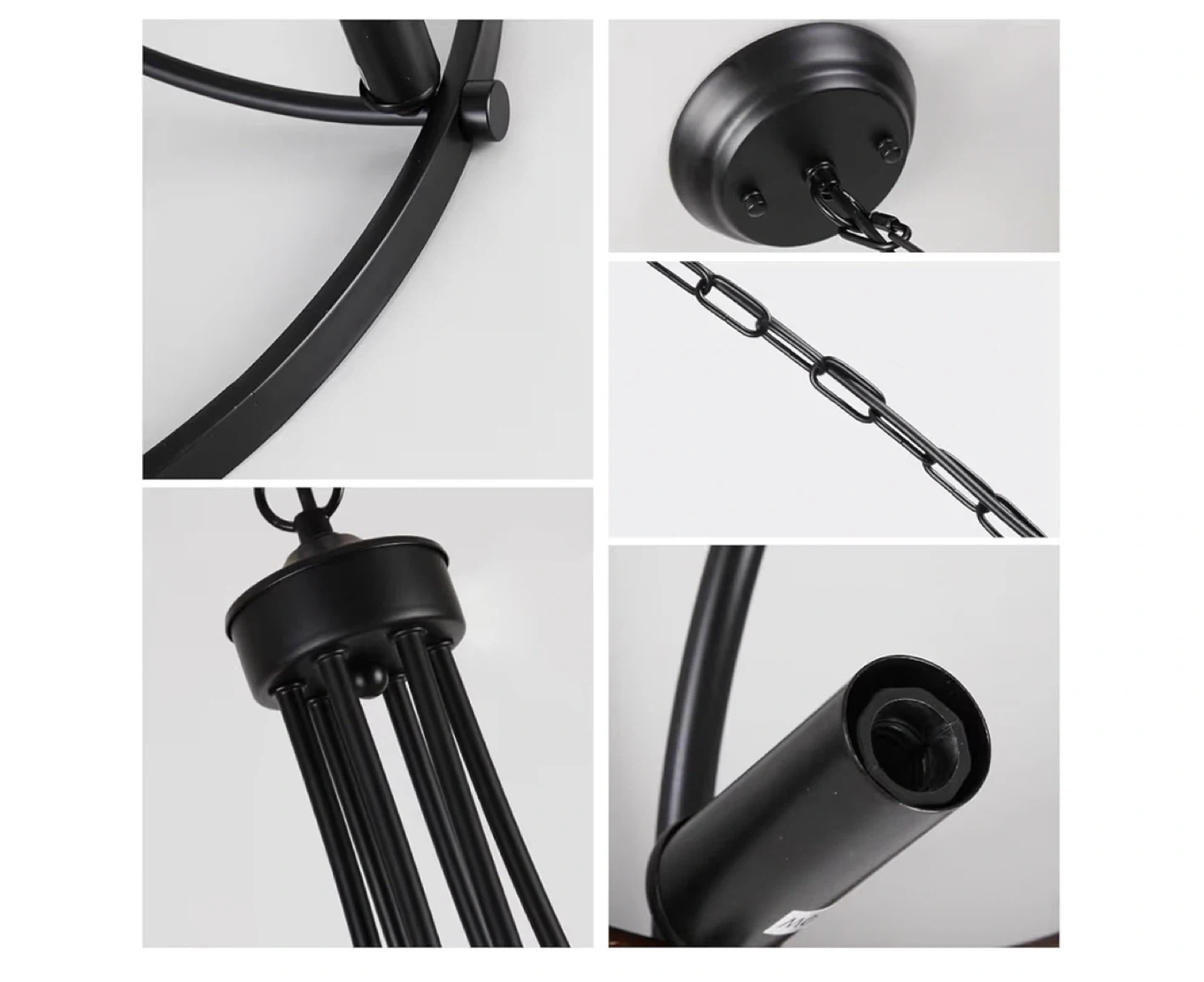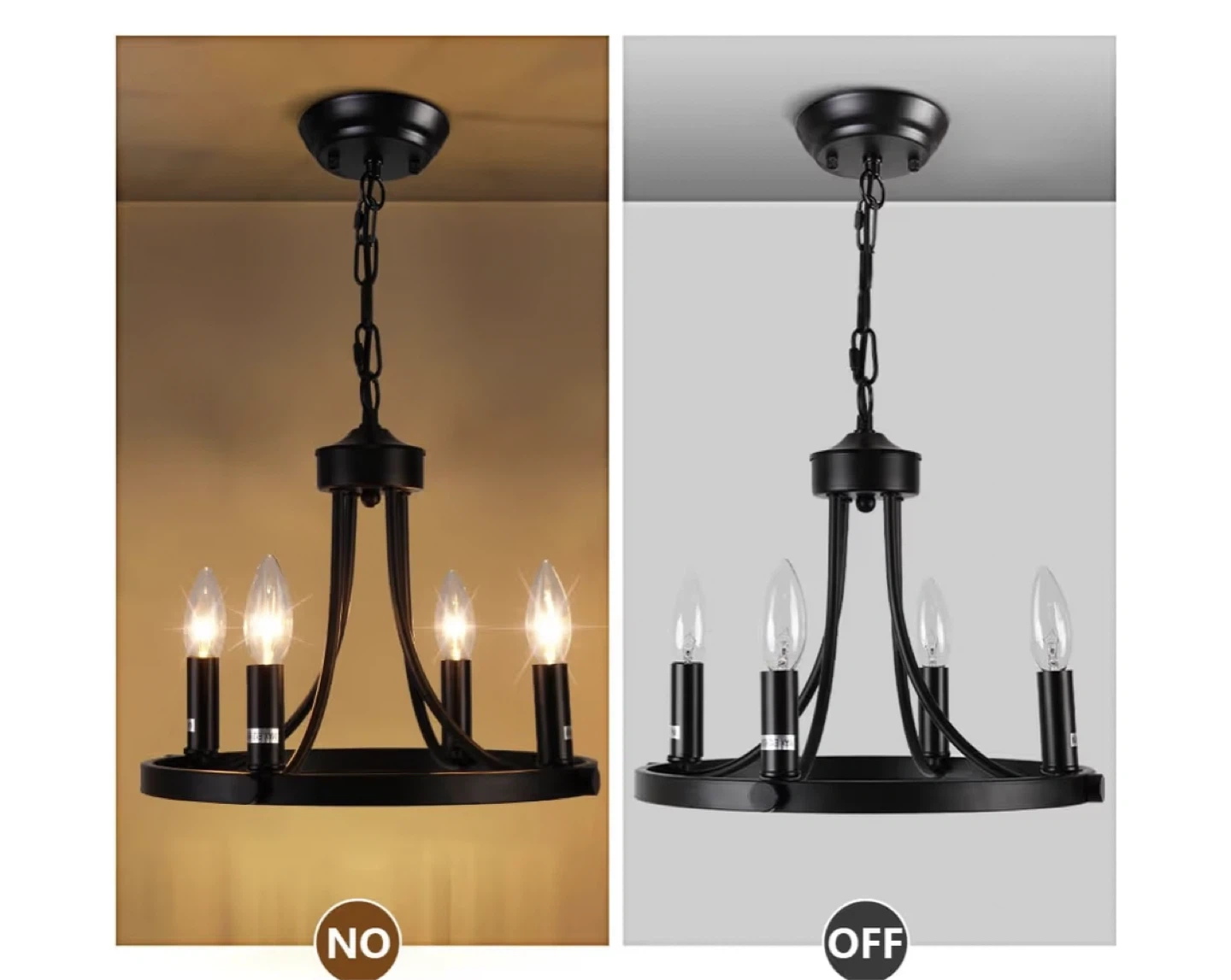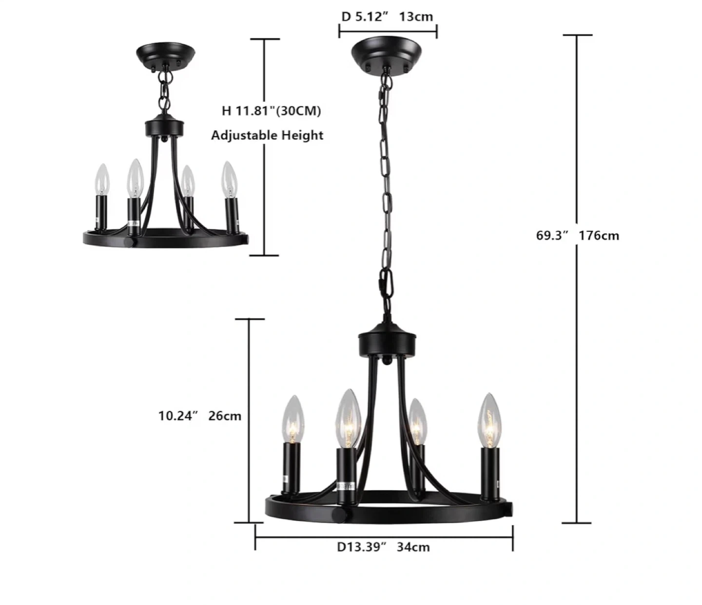 Add a touch of elegance to your home with this stylish black chandelier! It features four candle-style lights and an adjustable height, making it perfect for various spaces. The dimensions are: