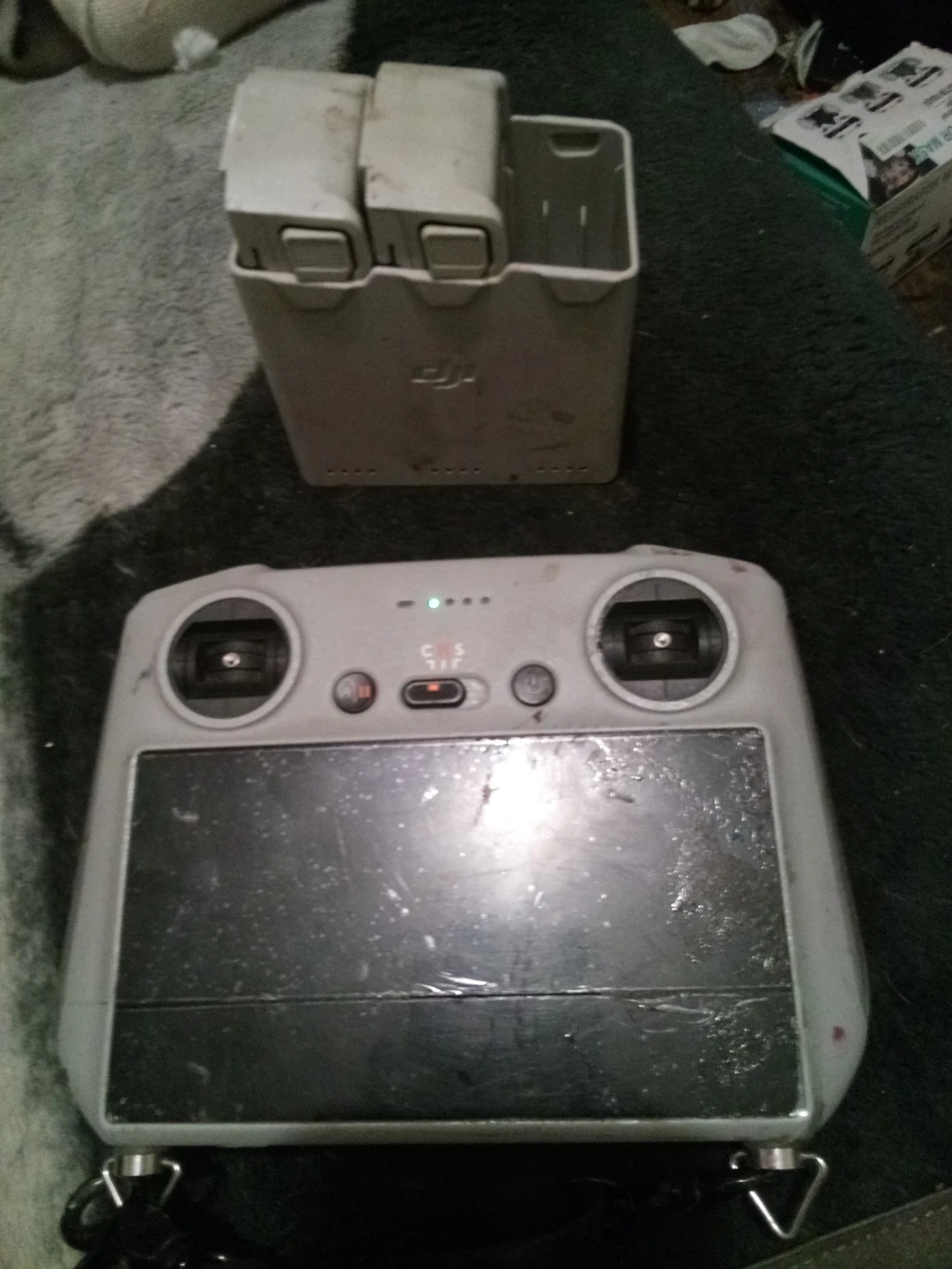 Selling a DJI drone remote controller and a battery charging hub. Both show signs of use but are fully functional. Perfect for someone looking for a replacement or extra accessories for their DJI drone!