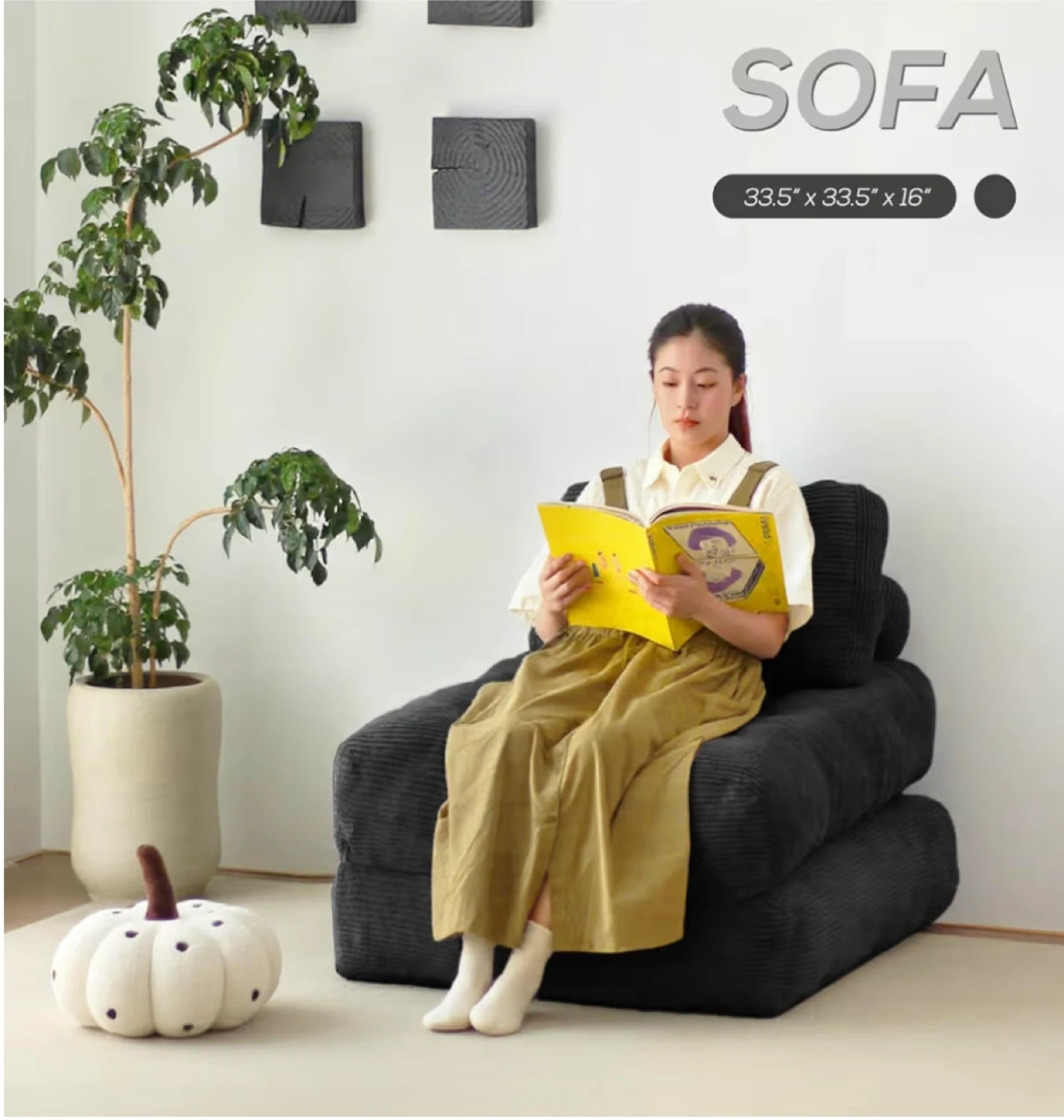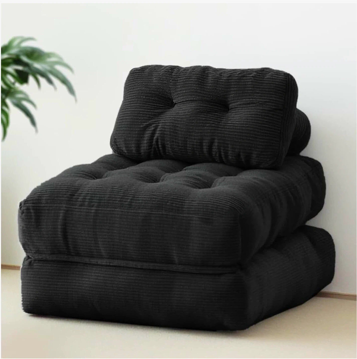 Black Corduroy Floor Cushion Chair