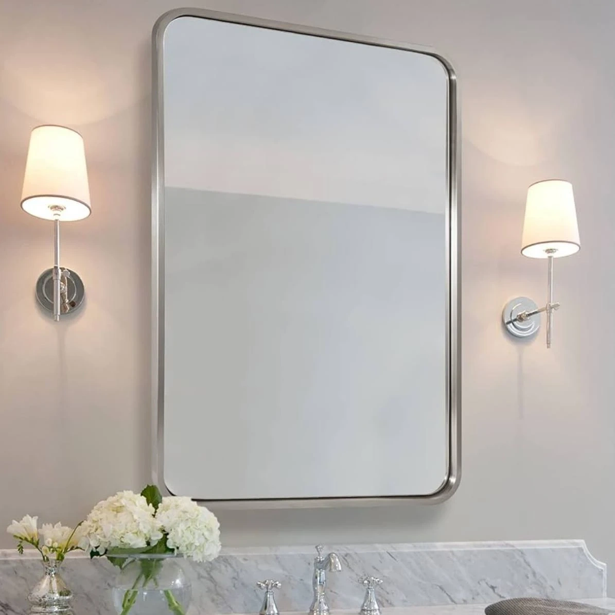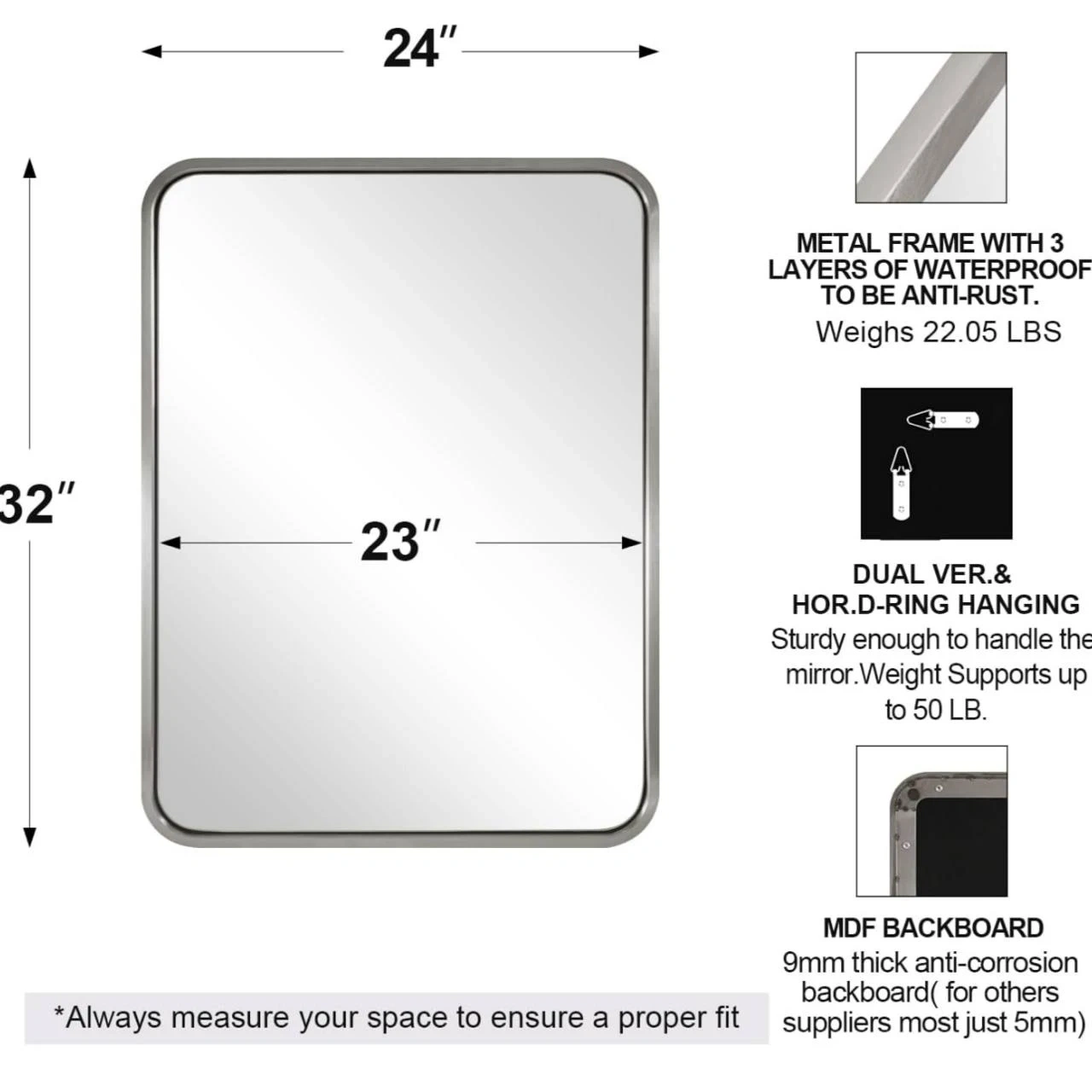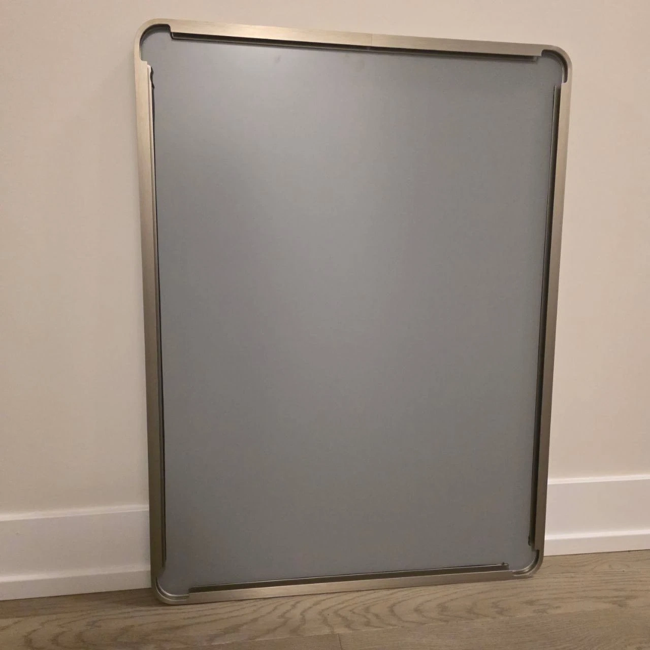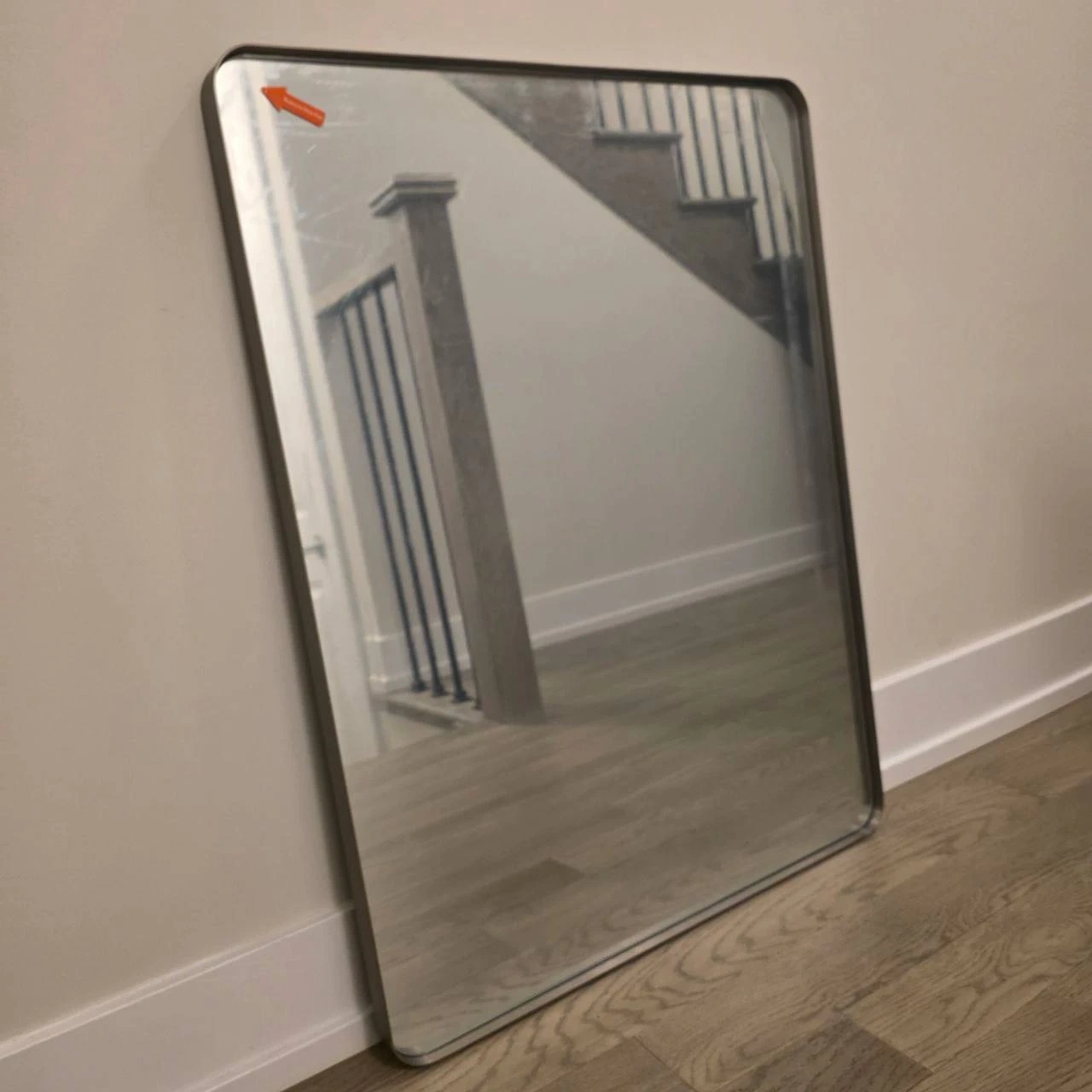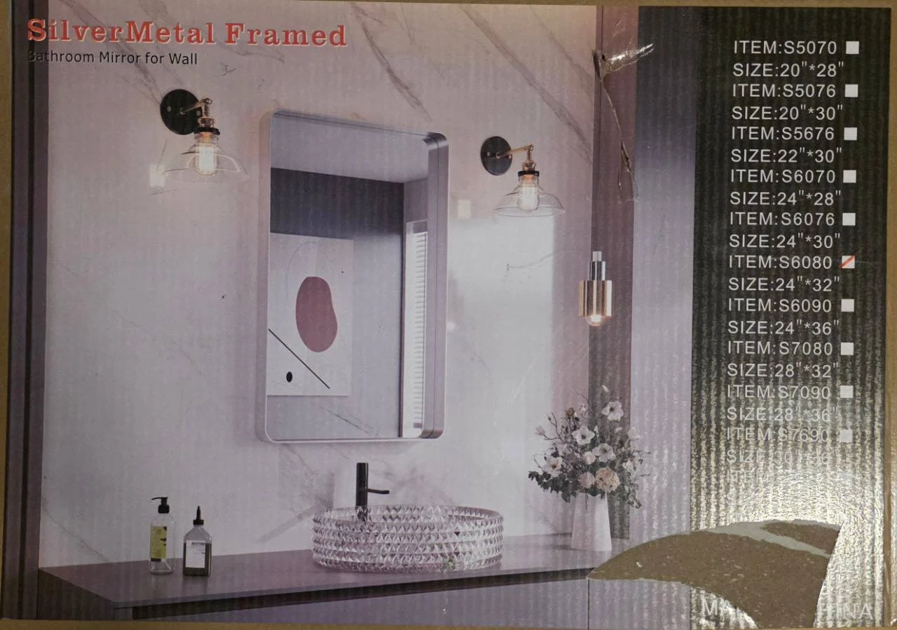 Brand new ANDY STAR 24x32 inch brushed nickel mirror, rounded rectangle shape. Stainless steel metal frame, 1” deep. Can be mounted vertically or horizontally. Pick up Oakvill