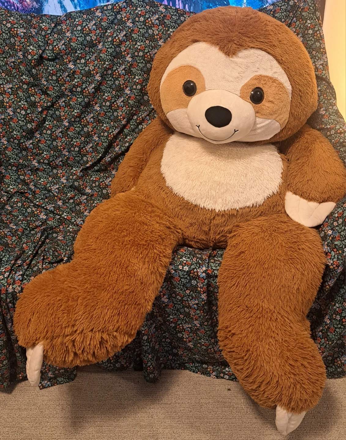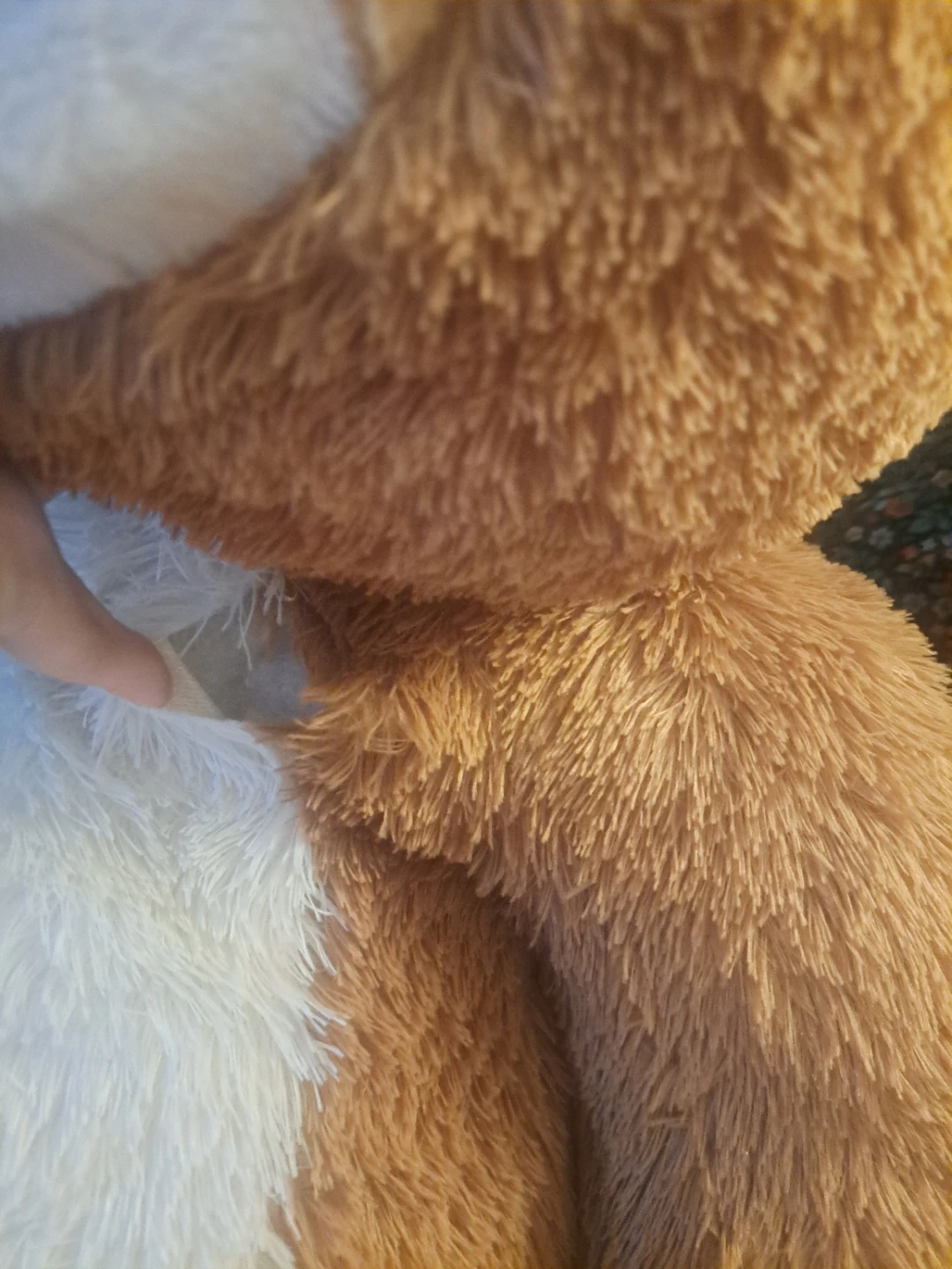 Small hole shown in second photo. Approx 3 inches. You dont notice when the sloth is sitting so I am unsure how or when it happened. Easy sew just kept forgetting and never noticed