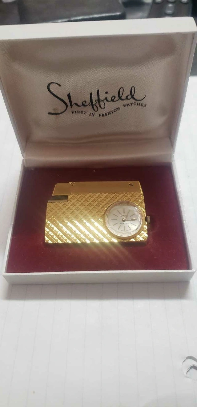 VINTAGE SHEFFILD SWISS MADE wind up WATCH LIGHTER. The lighter has not been used in the last 60 years or so. The clock is in excellent working condition. The lighter is in near mint condition with very small scratches. Would need a flint and butane to use. Asking $200. Pick up on Beaverbrook Lane in Kanata. Thank you