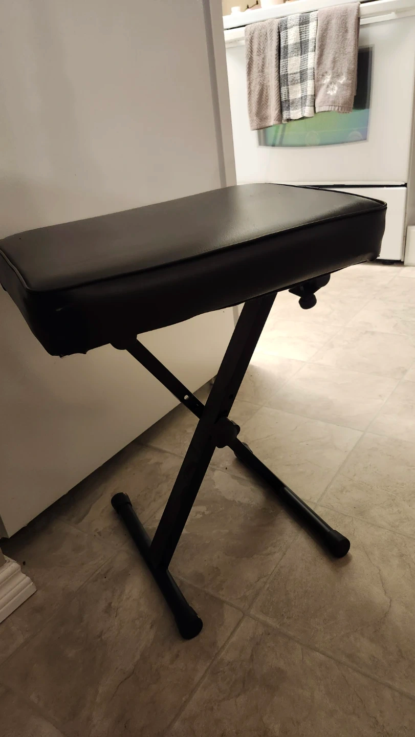 Selling an On-Stage Stands keyboard bench! It's in good condition has some repair on the sides as in pictures. Top has a little mark as in picture Sells for $59.00 on Amazon.