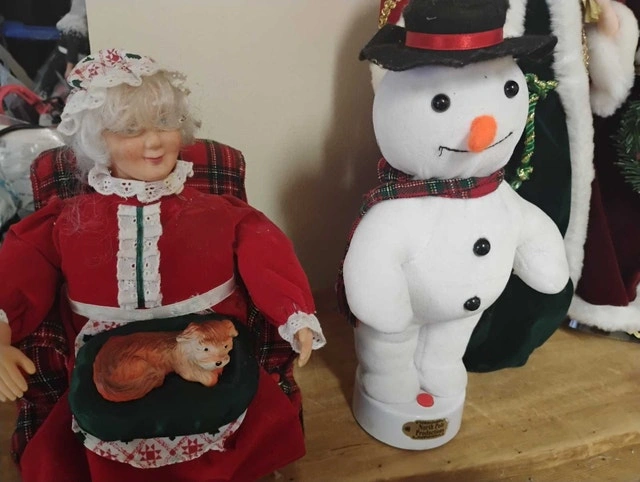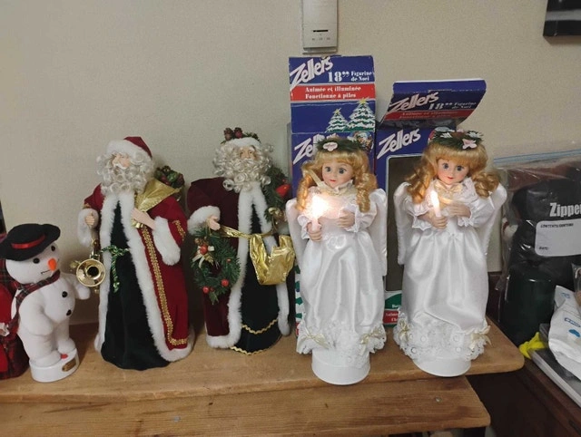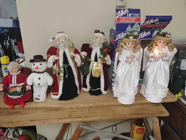 For sale, we have these 6 Christmas Animated Figures: Santa, Mama, Angel, Snowman.