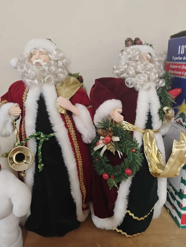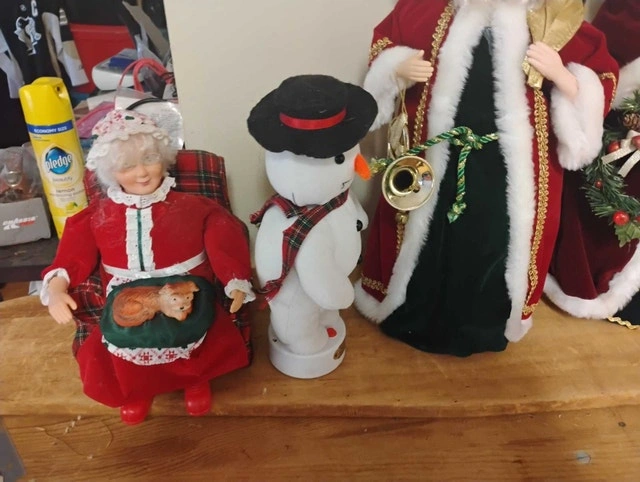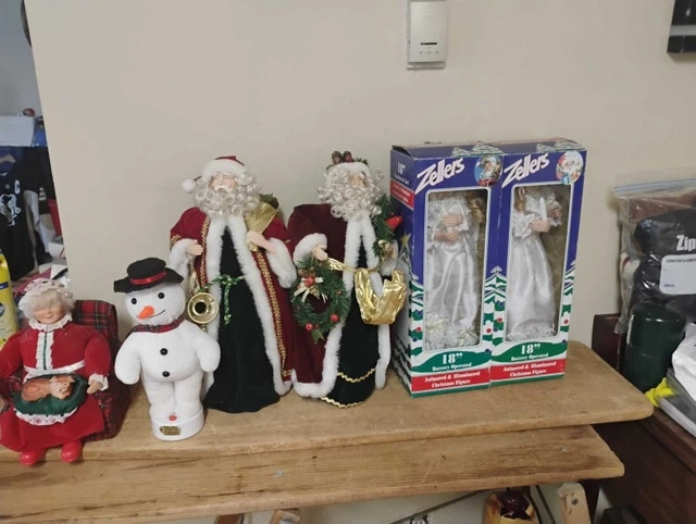 For sale, we have these 6 Christmas Animated Figures: Santa, Mama, Angel, Snowman.