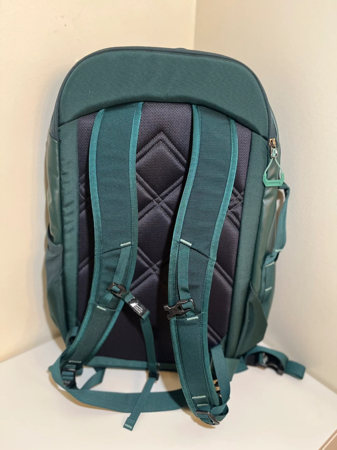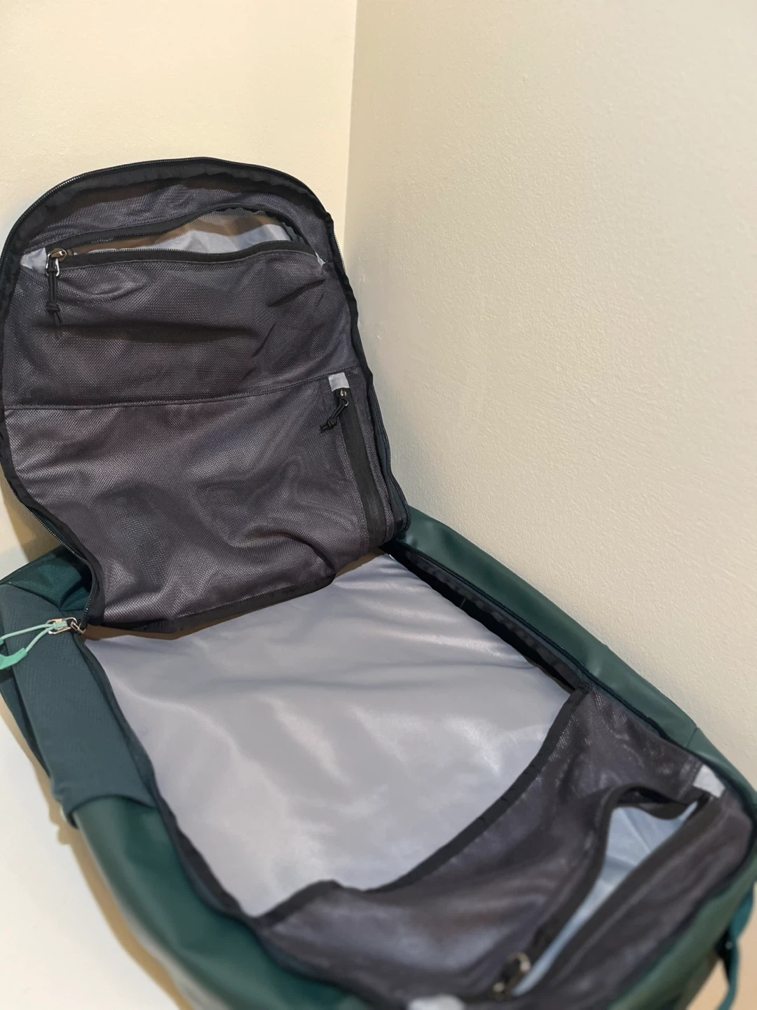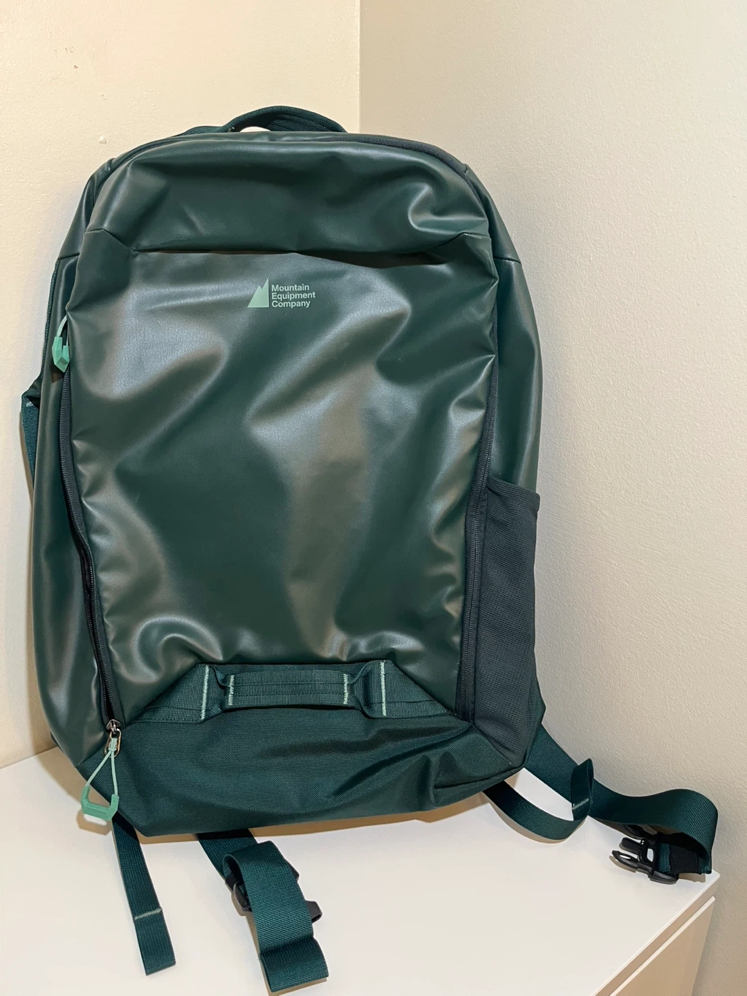 Selling a Mountain Equipment Co-op backpack in a rich green colour. Opens like a suitcase and has a side carry handle. Only used once and in like-new condition.