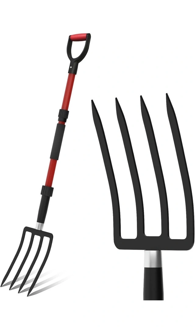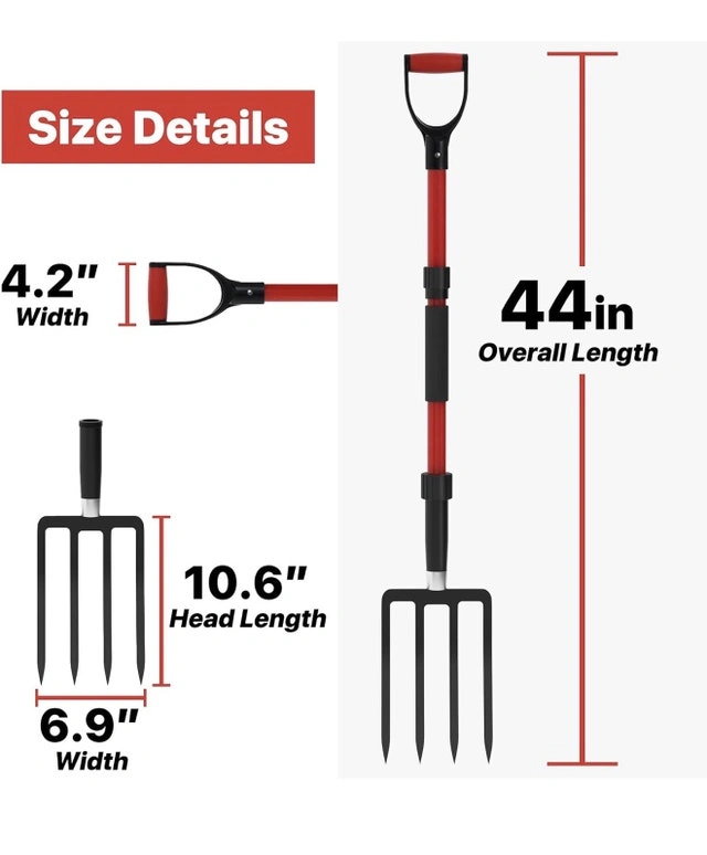 COSITA Pitch Fork for Garden, 44-Inches Pitchfork with Fiberglass Handle, Gardening Spading Fork with 4 Metal Tines, Heavy Duty Pitchfork for Manure, Mulch, Digging, Aeration, Red