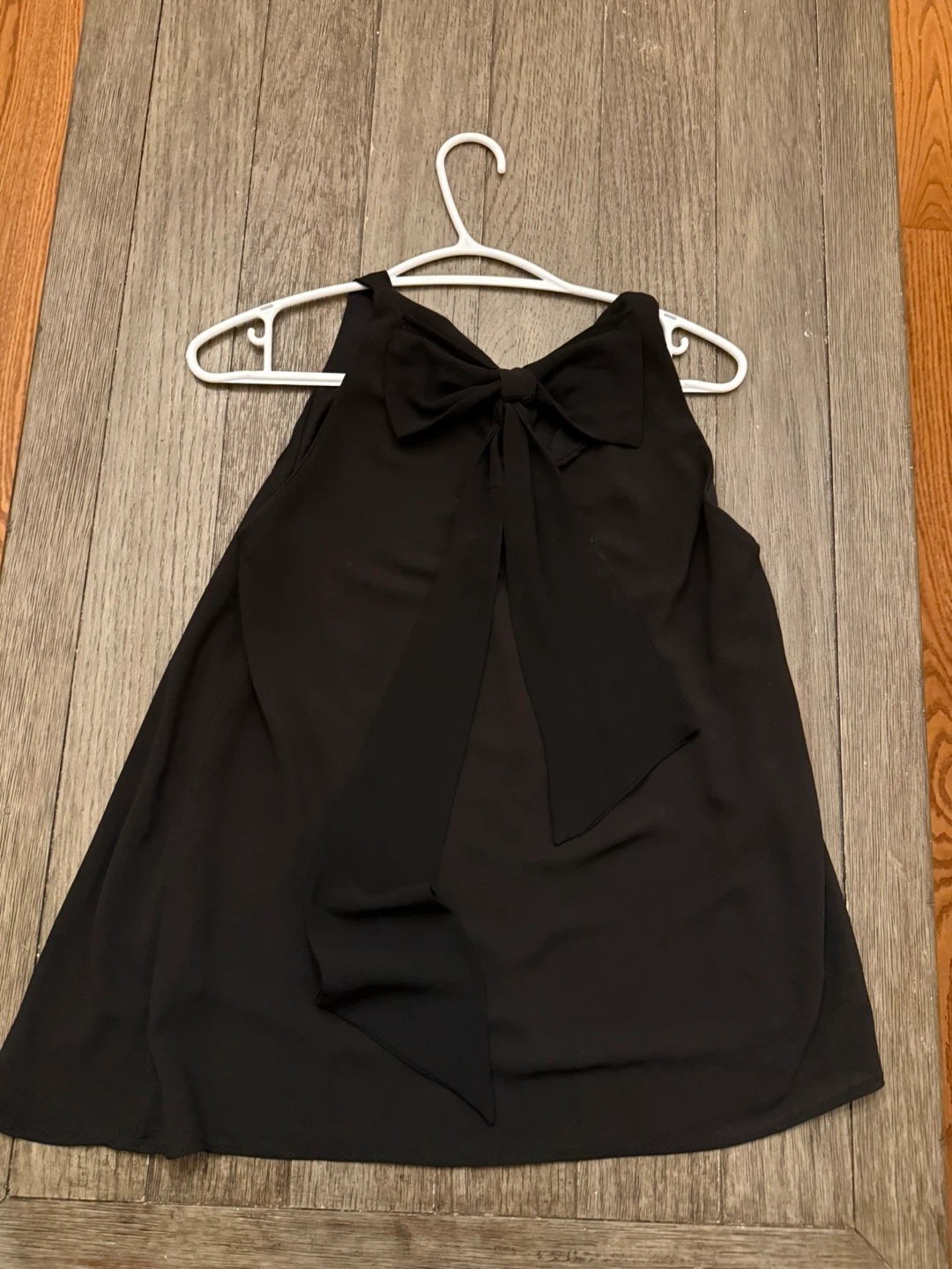 Selling a cute black sleeveless top with a bow detail at the back. It's in great condition and perfect for dressing up or down!