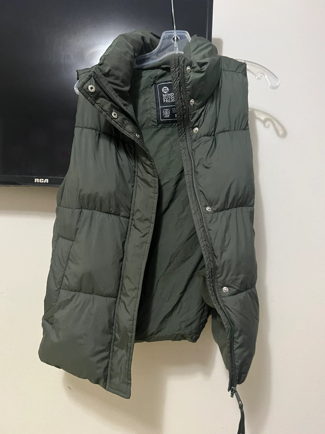 Selling a Mondetta Outdoor Project vest in size small. It's a stylish and comfortable vest perfect for layering! The vest features lightweight breathable insulation that is partially plant-based. It's made with recycled polyester.
