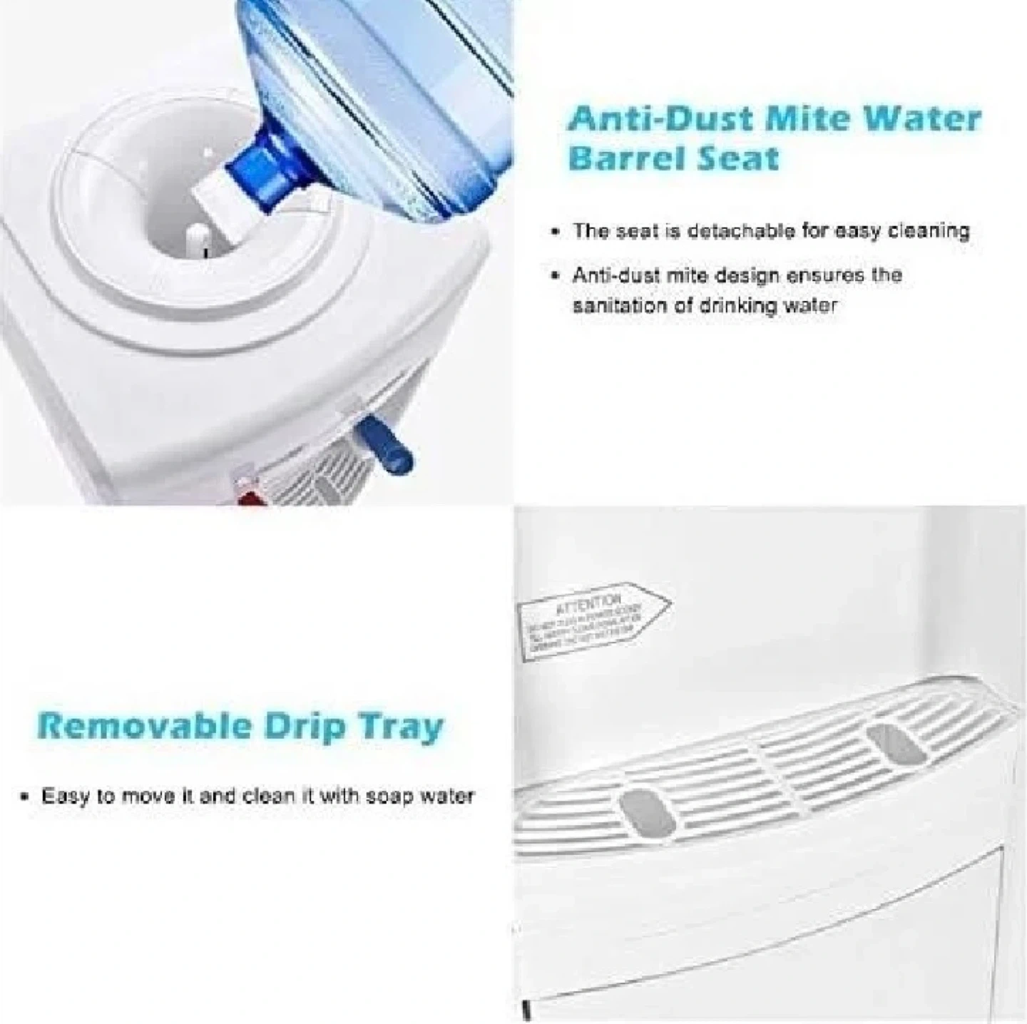 This brand new, in-box top loading water cooler dispenser is perfect for providing hot and cold water in your home or office. This dispenser accommodates 3 or 5 gallon bottles, offering convenience and ease of use with its anti-dust mite water barrel seat and removable drip tray. It also features back switches for controlling the hot and cold water functions, ranging from 190°F to 203°F for hot and 43°F to 50°F for cold water. This item has never been used and all components are sealed.