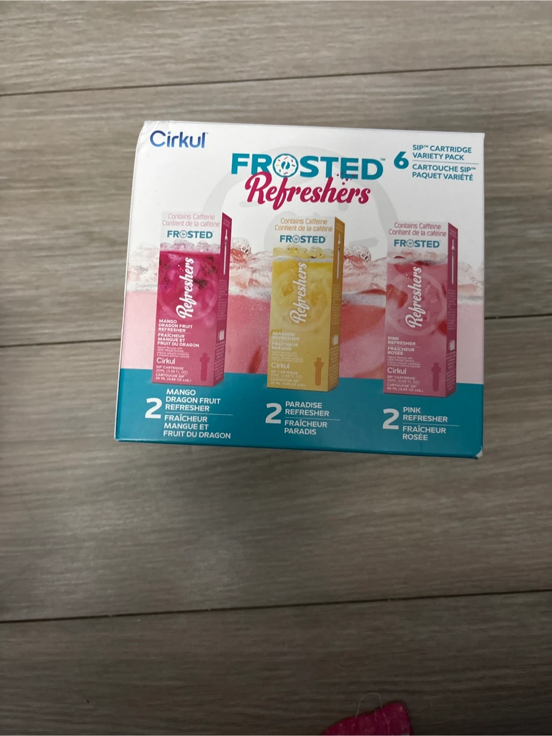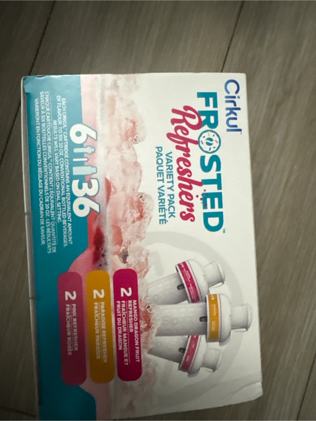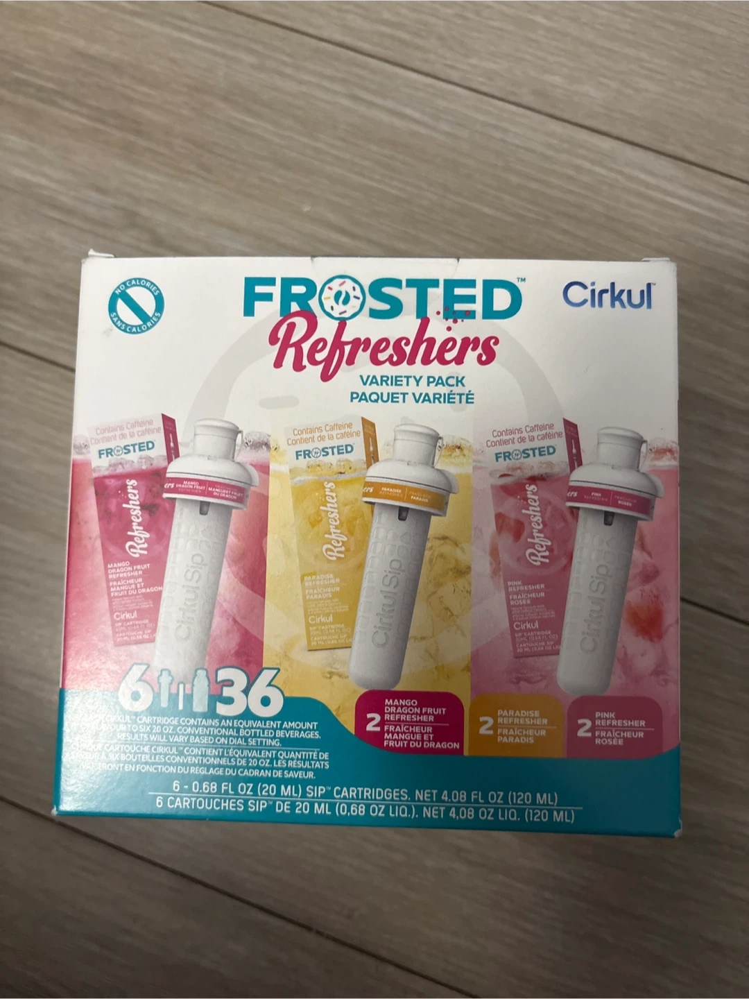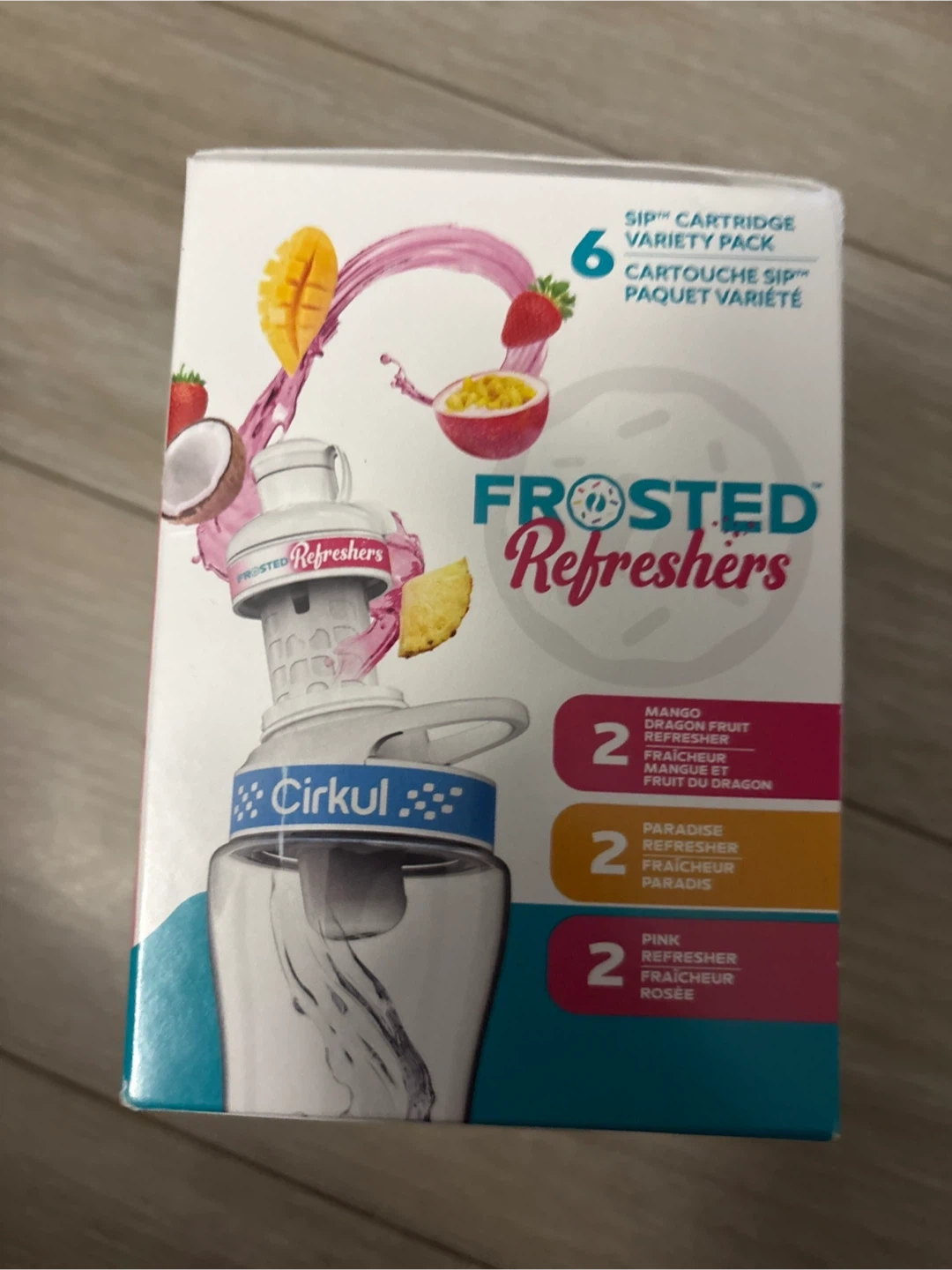 Selling a box of Cirkul Frosted Refreshers Variety Pack, which includes 6 sip cartridges! You'll get 2 Mango Dragon Fruit, 2 Paradise Refresher, and 2 Pink Refresher cartridges. Each cartridge contains an equivalent amount of flavour to six 20 oz conventional bottled beverages, so this is a great way to stay hydrated