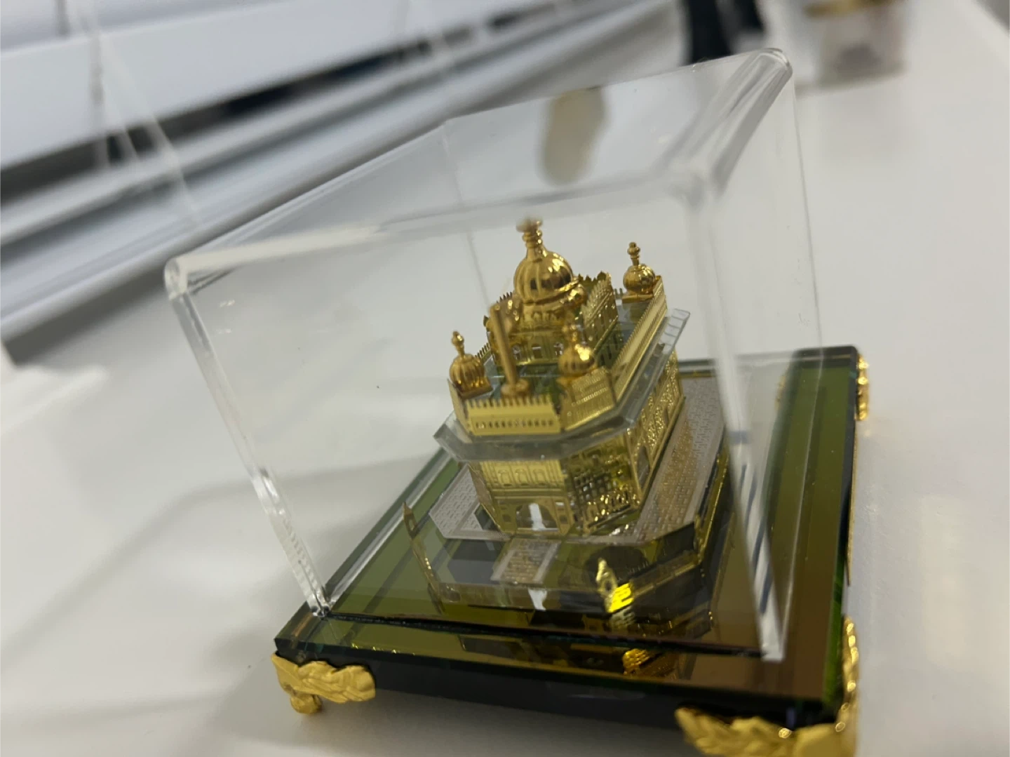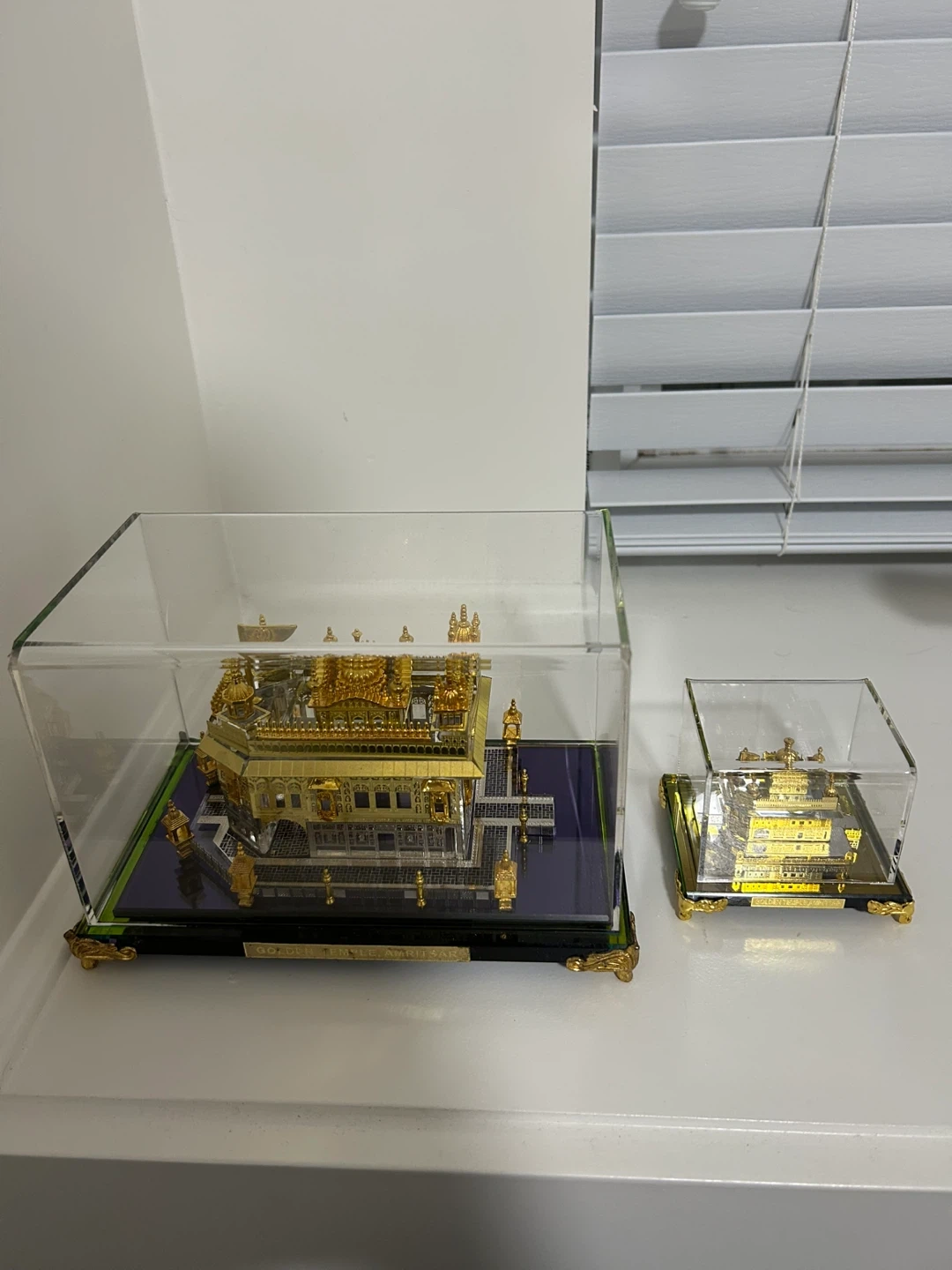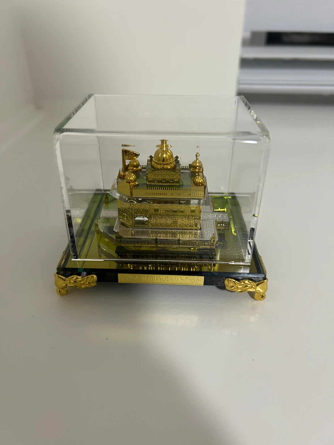 Selling a beautiful miniature replica of the Golden Temple, displayed in a clear protective case. It's a lovely piece for any collection or as a decorative item!