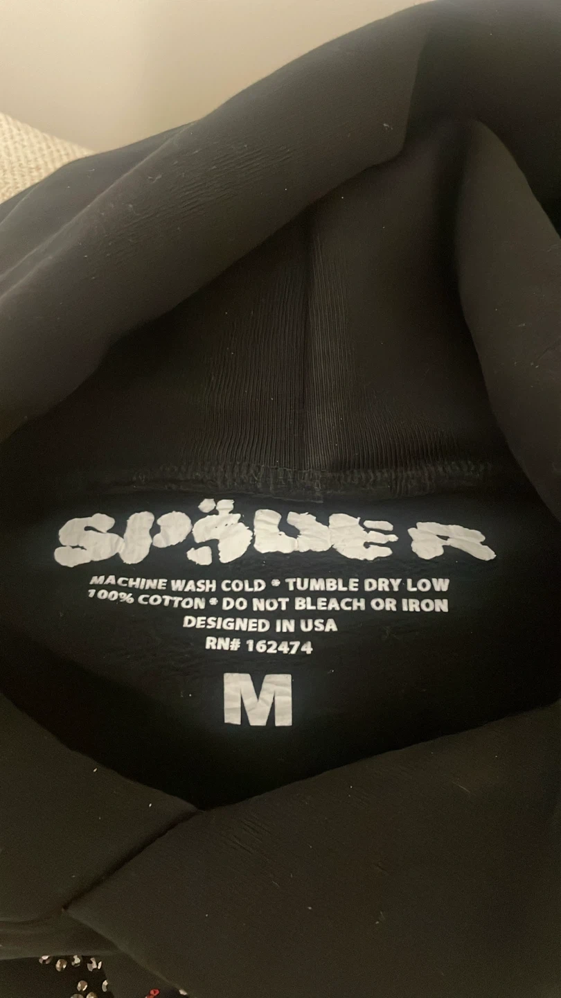 Selling a Sp5der black hoodie in size medium. Made from 100% cotton, it's machine washable too.