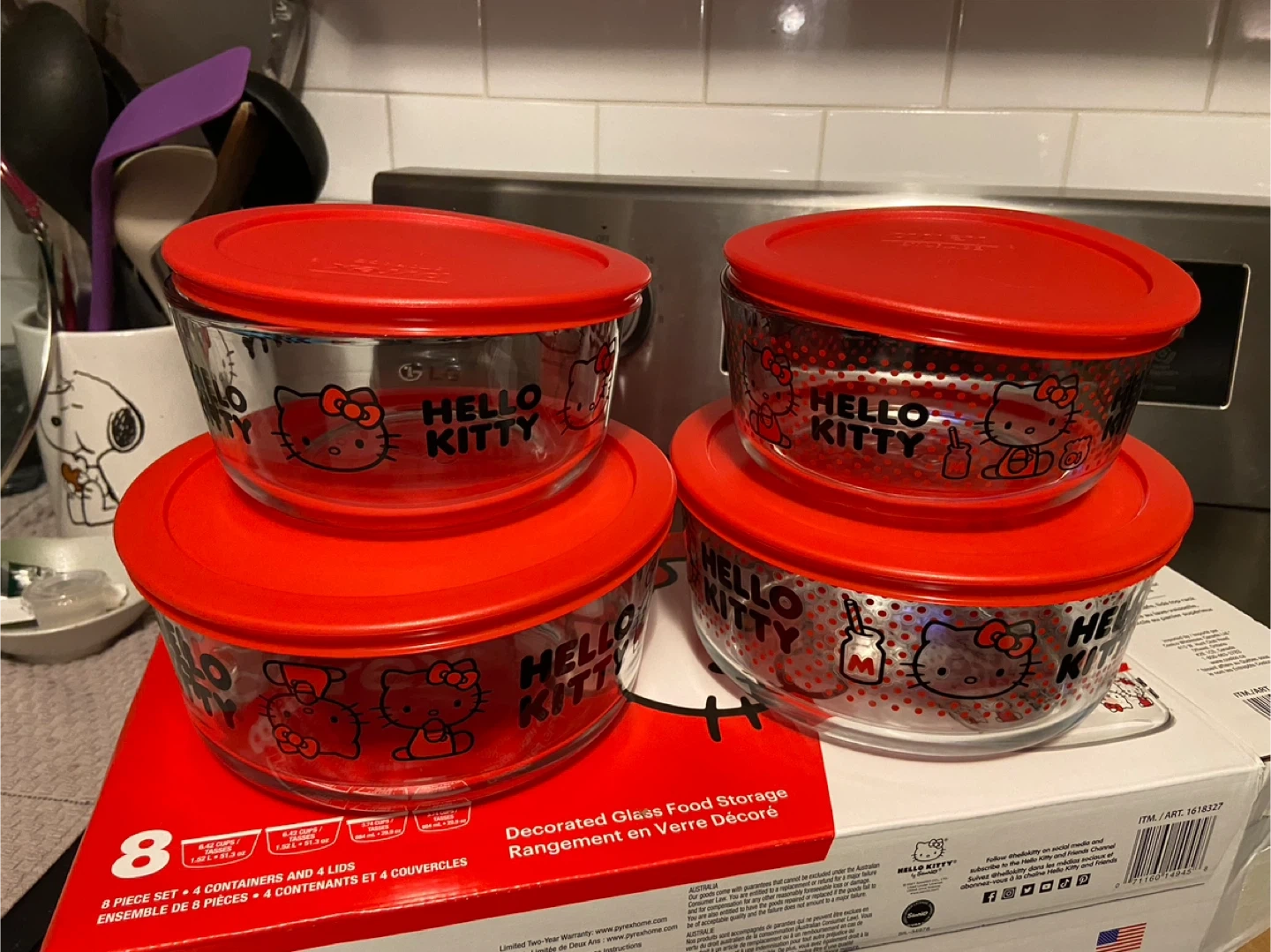 Hello Kitty Pyrex 8-Piece Glass Food Storage Set - New