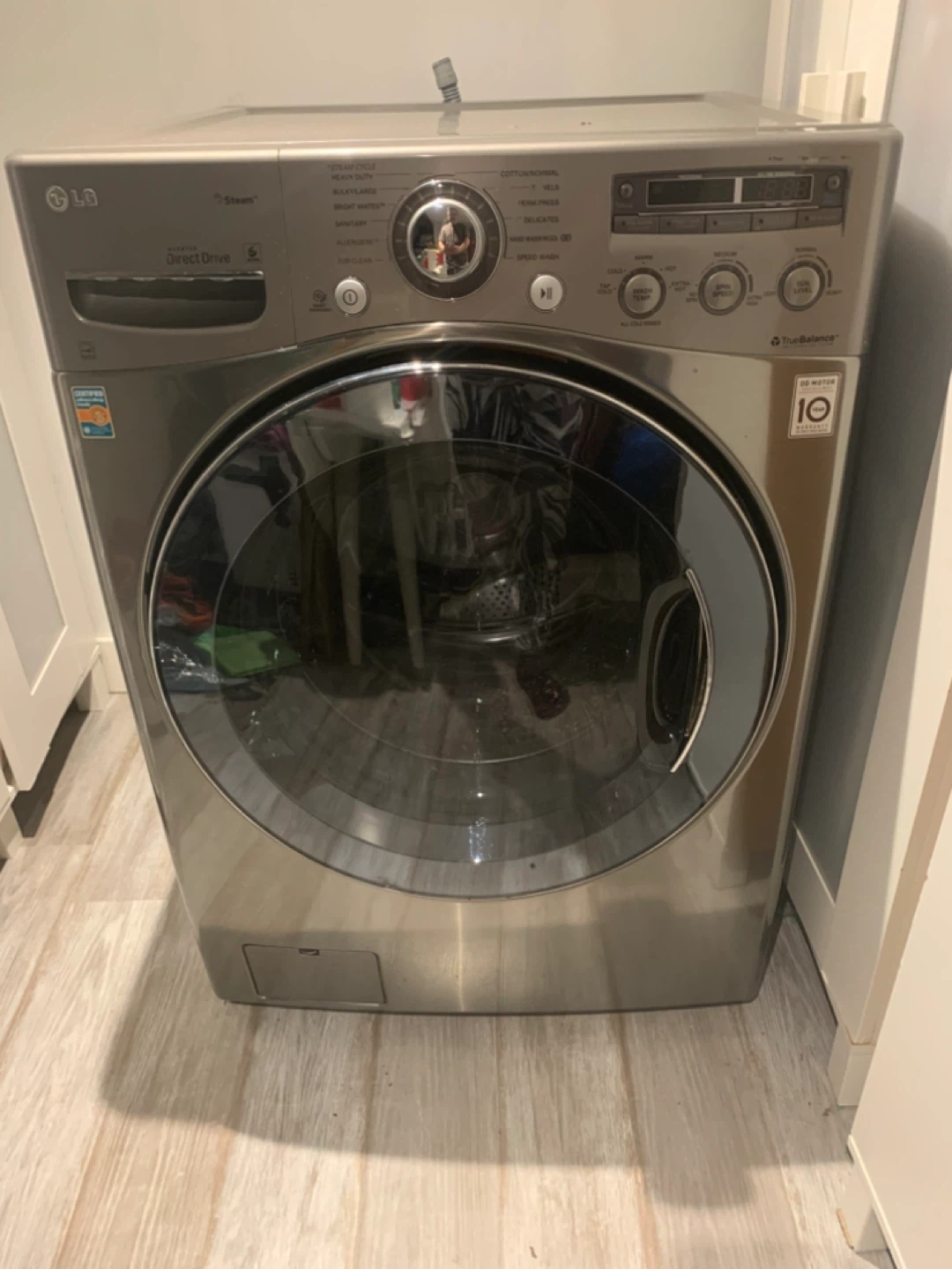 Selling an LG TrueBalance washing machine in silver. It's in good condition and ready to help with all your laundry needs. 10 year warranty on motor, easy maintenance. Temporary washer, only had it for a couple of months and used a handful of times.