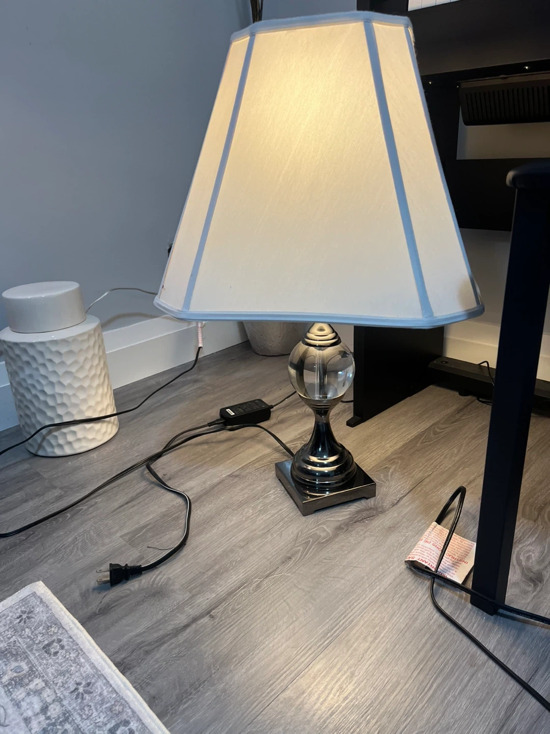 Table Lamp with White Shade and Chrome Base