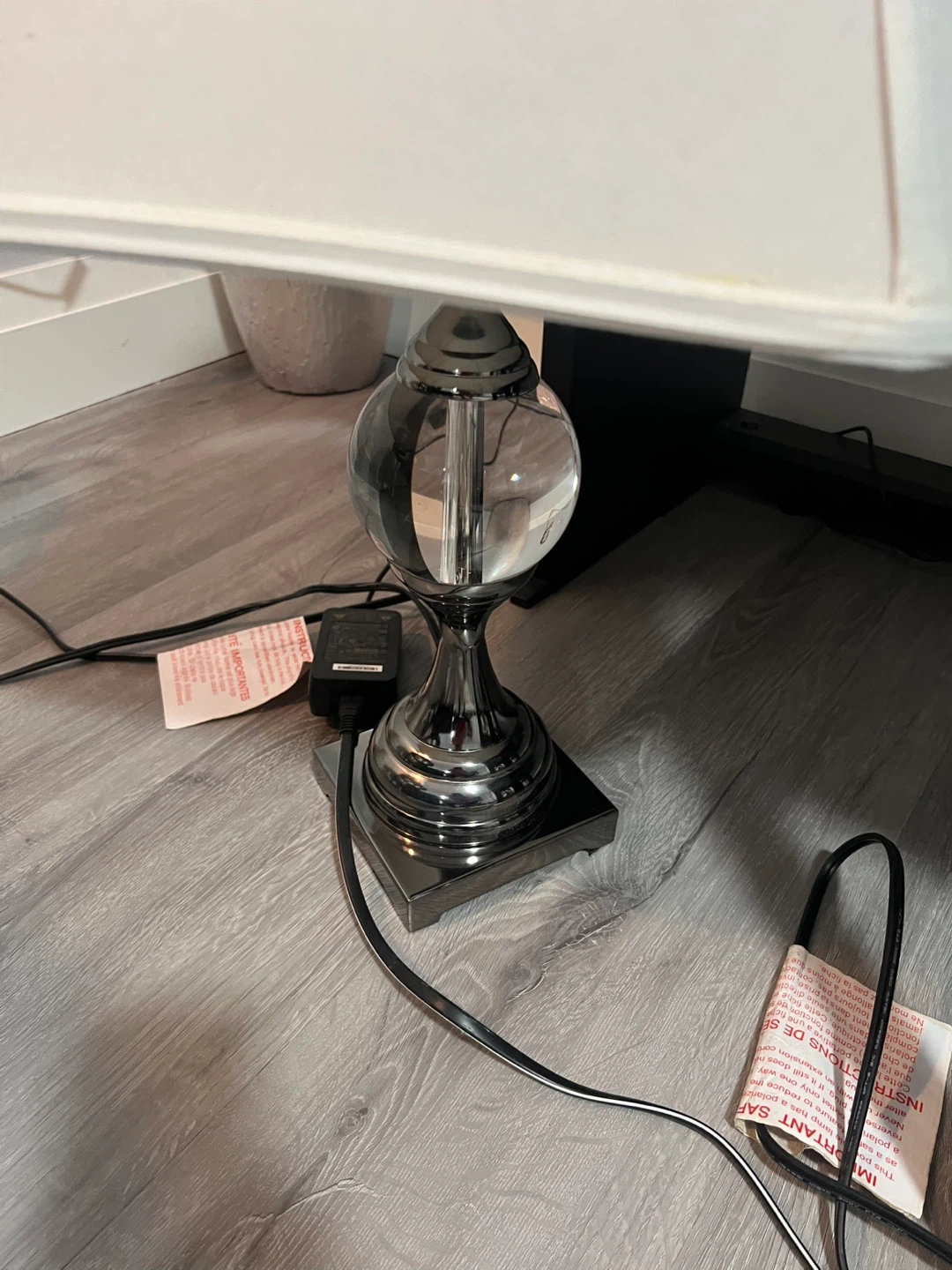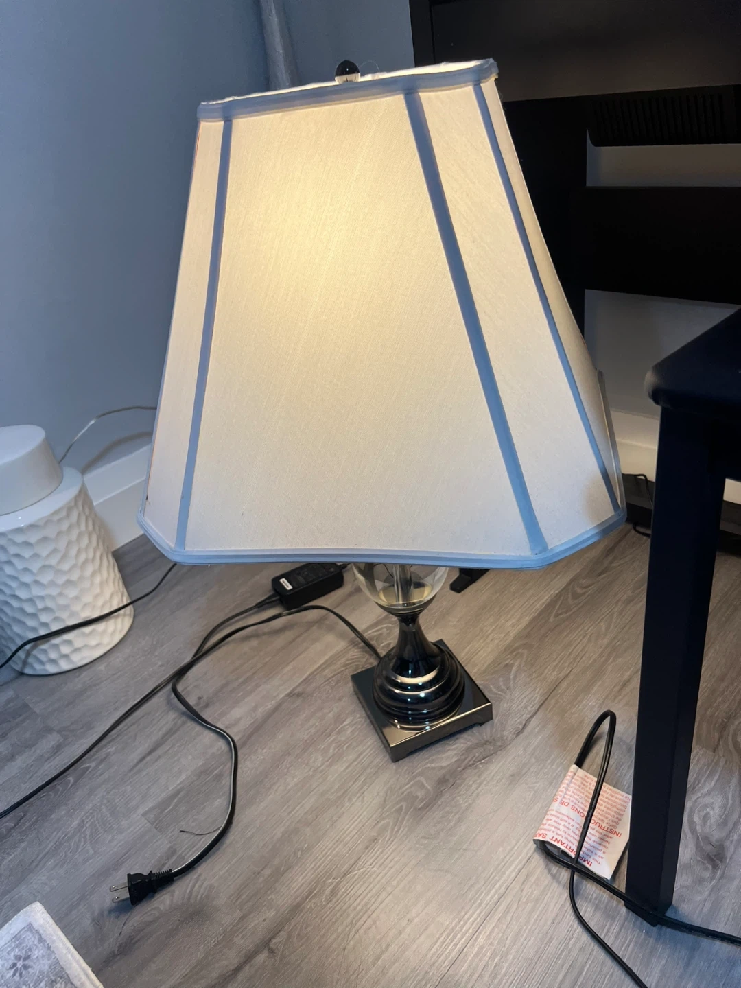 Table Lamp with White Shade and Chrome Base